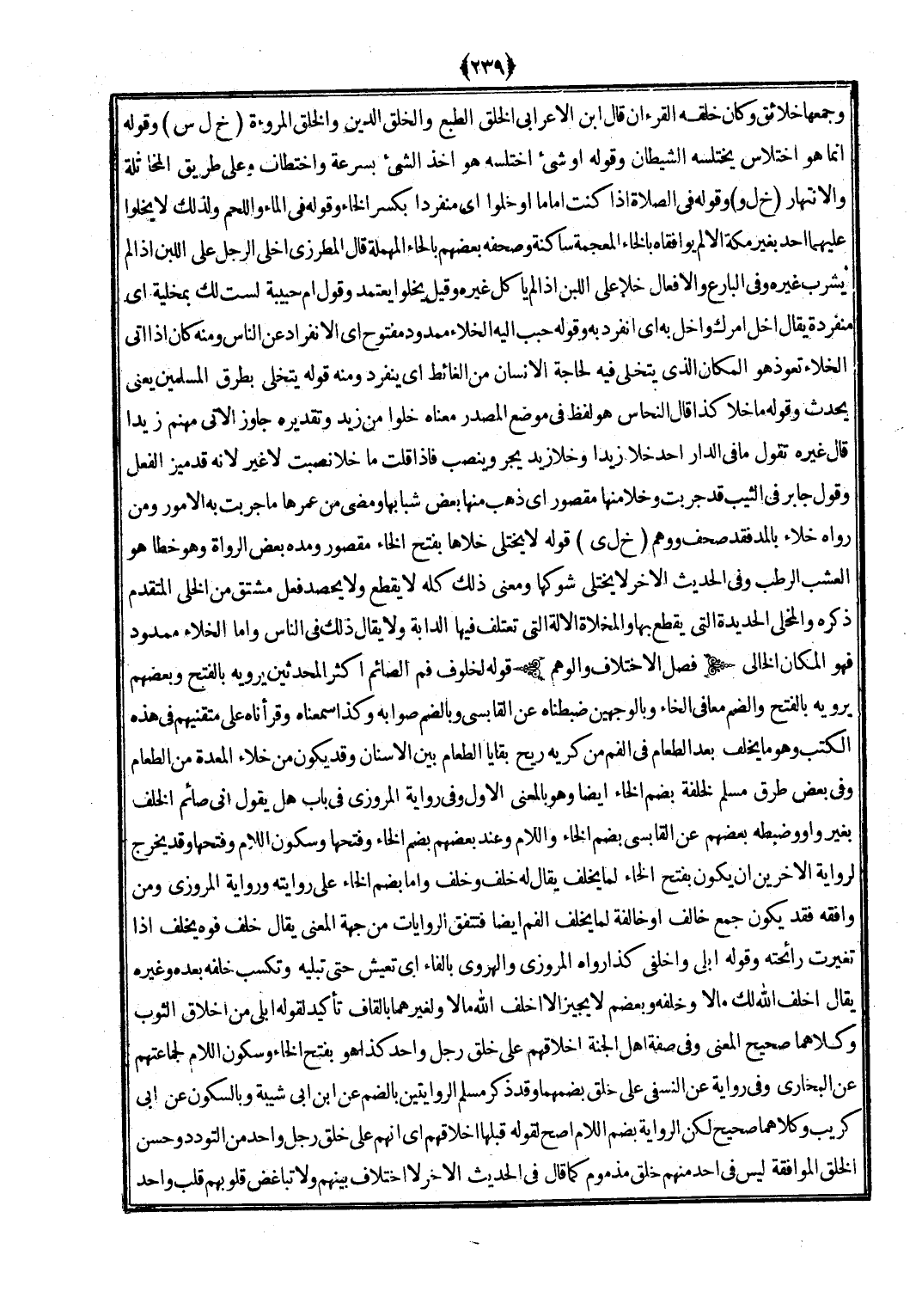 قَوْله لخلوف فَم الصَّائِم أَكثر الْمُحدثين يرويهِ بِالْفَتْح وَبَعْضهمْ يرويهِ بِالْفَتْح وَالضَّم مَعًا فِي الْخَاء وبالوجهين ضبطناه عَن الْقَابِسِيّ وبالضم صَوَابه وَكَذَا سمعناه وقرأناه على متقنيهم فِي هَذِه الْكتب وَهُوَ مَا يخلف بعد الطَّعَام فِي الْفَم من كريه ريح بقايا الطَّعَام بَين الْأَسْنَان وَقد يكون من خلاء الْمعدة من الطَّعَام وَفِي بعض طرق مُسلم لخلفة بِضَم الْخَاء أَيْضا وَهُوَ بِالْمَعْنَى الأول وَفِي رِوَايَة الْمروزِي فِي بَاب هَل يَقُول أَنِّي صَائِم الْخلف بِغَيْر وَاو وَضَبطه بَعضهم عَن الْقَابِسِيّ بِضَم الْخَاء وَاللَّام وَعند بَعضهم بِضَم الْخَاء وَفتحهَا وَسُكُون اللَّام وَفتحهَا وَقد يخرج لرِوَايَة الآخرين أَن يكون بِفَتْح الْخَاء لما يخلف يُقَال لَهُ خلف وَخلف وَأما بِضَم الْخَاء على رِوَايَته وَرِوَايَة الْمروزِي وَمن وَافقه فقد يكون جمع خَالف أَو خالفة لما يخلف الْفَم أَيْضا فتتفق الرِّوَايَات من جِهَة الْمَعْنى يُقَال خلف فوه يخلف إِذا تَغَيَّرت رَائِحَته وَقَوله أبلى واخلفي كَذَا رَوَاهُ الْمروزِي والهروي بِالْفَاءِ أَي تعيش حَتَّى تبليه وتكسب خَلفه بعده وَغَيره يُقَال أخلف الله لَك مَالا وَخَلفه وَبَعْضهمْ لَا يُجِيز إِلَّا أخلف الله مَالا ولغيرهما بِالْقَافِ تَأْكِيد لقَوْله أبلى من أَخْلَاق الثَّوْب وَكِلَاهُمَا صَحِيح الْمَعْنى وَفِي صفة أهل الْجنَّة أَخْلَاقهم على خلق رجل وَاحِد كَذَا هُوَ بِفَتْح الْخَاء وَسُكُون اللَّام لجماعتهم عَن البُخَارِيّ وَفِي رِوَايَة عَن النَّسَفِيّ على خلق بضمهما وَقد ذكر مُسلم الرِّوَايَتَيْنِ بِالضَّمِّ عَن ابْن أبي شيبَة وبالسكون عَن أبي كريب وَكِلَاهُمَا صَحِيح لَكِن الرِّوَايَة بِضَم اللَّام أصح لقَوْله قبلهَا أَخْلَاقهم أَي أَنهم على خلق رجل وَاحِد من التودد وَحسن الْخلق الْمُوَافقَة لَيْسَ فِي أحد مِنْهُم خلق مَذْمُوم كَمَا قَالَ فِي الحَدِيث الآخر لَا اخْتِلَاف بَينهم وَلَا تباغض قُلُوبهم قلب وَاحِد