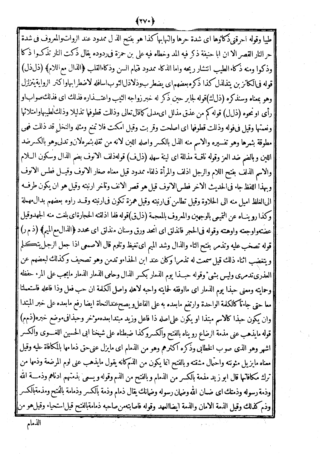 (ذ م م) قَوْله مَا يذهب عني مذمة الرَّضَاع روينَاهُ بِالْفَتْح وَالْكَسْر وَكَذَا ضبطناه على شَيخنَا أبي الْحُسَيْن اللّغَوِيّ وَالْكَسْر أشهر وَهُوَ الَّذِي صوب الْخطابِيّ وَذكره أَكْثَرهم وَهُوَ من الذمام أَي مَا يزل عني حق ذمامها بالمكافأة عَلَيْهِ وَقيل مَعْنَاهُ مَا يزِيل مؤونته وَاحْتِمَال مشقته وبالفتح إِنَّمَا يكون من الذَّم كَأَنَّهُ يَقُول مَا يذهب عني لوم الْمُرضعَة وذمها من ترك مكافأتها قَالَ أَبُو زيد مذمة بِالْكَسْرِ من الذمام وبالفتح من الذَّم وَقَوله وَيسْعَى بِذِمَّتِهِمْ أَدْنَاهُم وَذمَّة الله وَذمَّة رَسُوله وذمتك أَي ضَمَان الله وَضَمان رَسُوله وضمانك يُقَال ذمام وَذمَّة بِالْكَسْرِ وذمامة بِالْفَتْح ومذمة بِالْكَسْرِ وذم كَذَلِك وَقيل الذِّمَّة الْأمان والذمة أَيْضا الْعَهْد وَقَوله فأصابته من صَاحبه ذمَامَة بِالْفَتْح قيل استحياء وَقيل هُوَ من