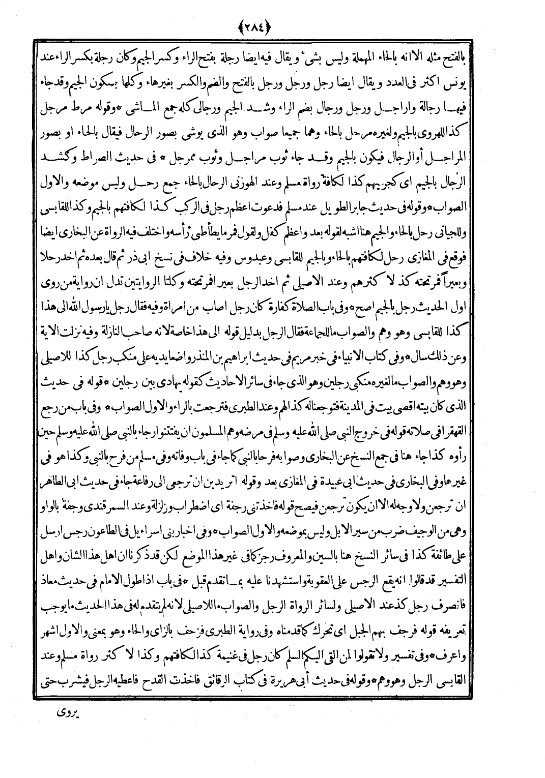 وَقَوله فِي حَدِيث جَابر الطَّوِيل عِنْد مُسلم فدعوت أعظم رجل فِي الركب كَذَا لكافتهم بِالْجِيم وَكَذَا للقابسي وللجياني رَحل بِالْحَاء وَالْجِيم هُنَا أشبه لقَوْله بعد وَأعظم كفل وَلقَوْل فَمر مَا يُطَأْطِئ رَأسه وَاخْتلف فِيهِ الروَاة عَن البُخَارِيّ أَيْضا فَوَقع فِي الْمَغَازِي رَحل لكافتهم بِالْحَاء وبالجيم للقابسي وعبدوس وَفِيه خلاف فِي نسخ أبي ذَر ثمَّ قَالَ بعده ثمَّ أخدر حلا وبعيرا فمرتحته كذ لأكثرهم وَعند الْأصيلِيّ ثمَّ أَخذ الرجل بَعِيرًا فمرتحته وكلتا الرِّوَايَتَيْنِ تدل أَن رِوَايَة من روى أول الحَدِيث رجل بِالْجِيم أصح