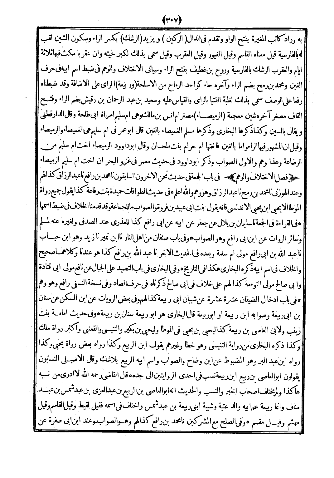 وَفِي بَاب صنفان من أهل النَّار نَا ابْن نمير نَا زيد وَهُوَ ابْن حباب نَا عبد الله بن أبي رَافع مولى أم سَلمَة وَبعده فِي الحَدِيث الآخر نَا عبد الله بن رَافع كَذَا هُوَ عندنَا وَكِلَاهُمَا صَحِيح وَالْخلاف فِي اسْم أَبِيه ذكره البُخَارِيّ هَكَذَا فِي التَّارِيخ