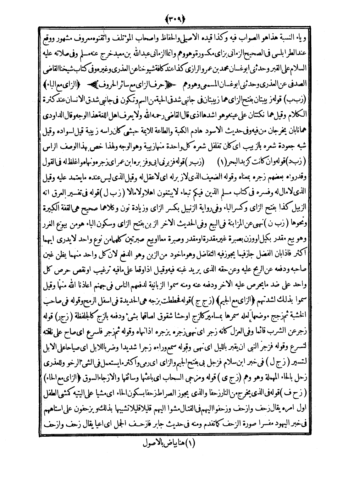 (زج ر) قَوْله زجر عَن الشّرْب قَائِما وَفِي الْعَزْل كَأَنَّهُ زجر أَي نهى زَجره يزجره إِذا نَهَاهُ وَقَوله ثمَّ زجر فأسرع أَي صَاح على نَاقَته لتسرع وَقَوله فزجر النَّبِي أَن يقبر بِاللَّيْلِ أَي نهي وَقَوله سمع وَرَاءه زجرا شَدِيدا وضر باللابل أَي صياحا على الْإِبِل لتسير