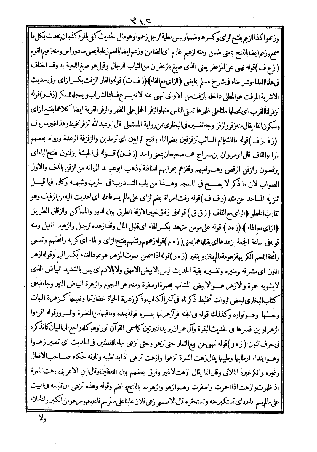 (ز هـ ر) قَوْله إِذا سمعن صَوت المزهر هُوَ عود الْغناء بِكَسْر الْمِيم وَقَوله أَزْهَر اللَّوْن أَي مشرقه ومنيره وَتَفْسِيره بَقِيَّة الحَدِيث لَيْسَ بالأبيض الأمهق وَلَا بِالْأدمِ أَي لَيْسَ بالشديد الْبيَاض الَّذِي لَا يشوبه حمرَة والأزهر هُوَ الْأَبْيَض المشاب بحمرة أَو صفرَة وَمِنْه زهر النُّجُوم والزهرة الْبيَاض النير وَجَاء فِيهِ فِي كتاب البُخَارِيّ لبَعض الروَاة تَخْلِيط ذَكرْنَاهُ فِي آخر الْكتاب وَذكر زهرَة الْحَيَاة غضارتها وَنَعِيمهَا كزهرة النَّبَات وحسنها وَهُوَ نواره وَكَذَلِكَ قَوْله فِي الْجنَّة فرآ زهرتها يفسره قَوْله بعده وَمَا فِيهَا من النضرة وَالسُّرُور قَوْله اقْرَءُوا الزهراوين فَسرهَا فِي الحَدِيث الْبَقَرَة وَآل عمرَان يُرِيد النيرتين كَمَا سمي الْقُرْآن نور أَو هُوَ كُله رَاجع إِلَى الْبَيَان كَمَا نذكرهُ فِي حرف النُّون