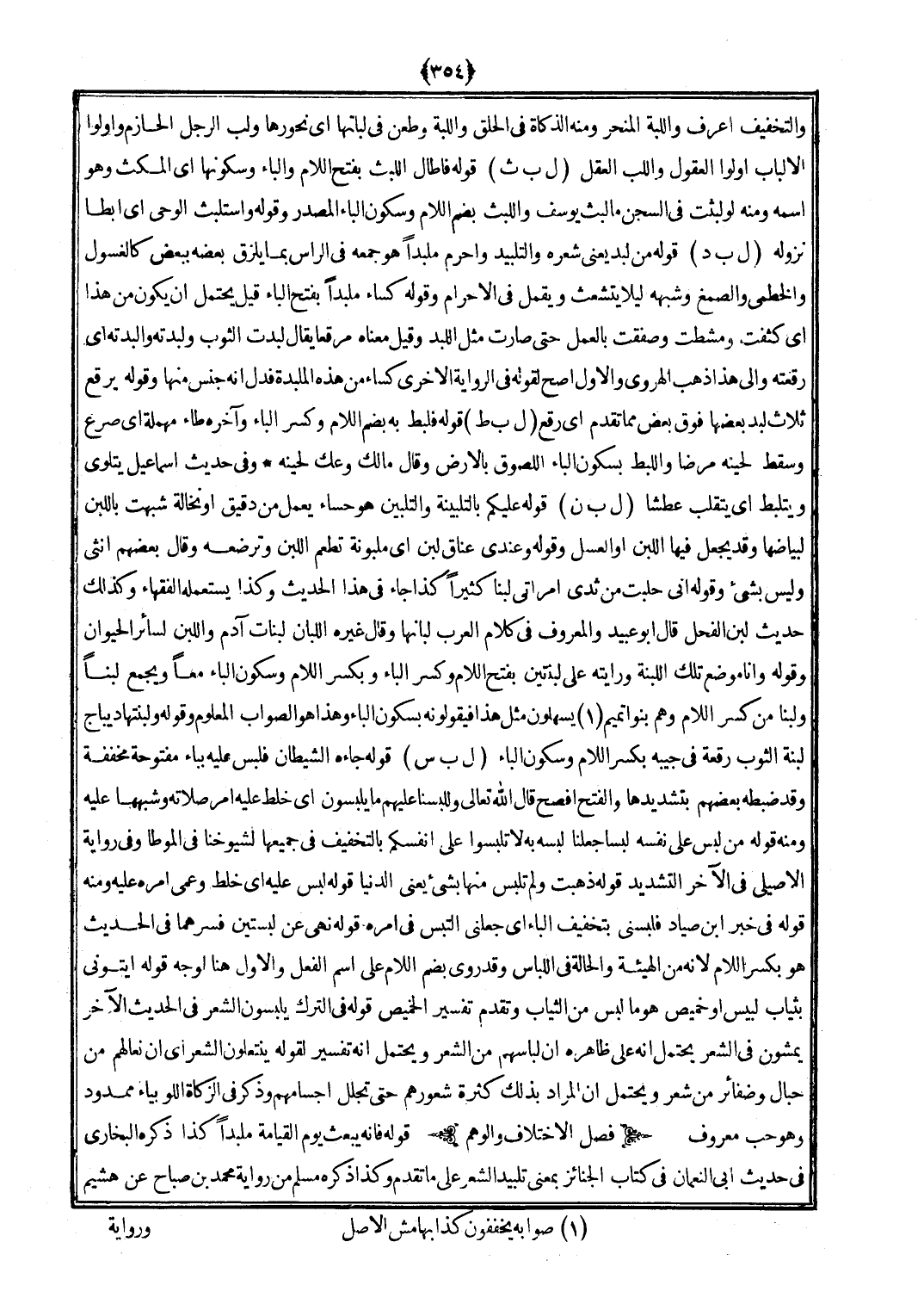(أَي خلط عَلَيْهِ أَمر صلَاته وَشبههَا عَلَيْهِ وَمِنْه قَوْله من لبس على نَفسه لبسا جعلنَا لبسه بِهِ لَا تلبسوا على أَنفسكُم بِالتَّخْفِيفِ فِي جَمِيعهَا لشيوخنا فِي الْمُوَطَّأ وَفِي رِوَايَة الْأصيلِيّ فِي الآخر التَّشْدِيد قَوْله ذهبت وَلم تلبس مِنْهَا بِشَيْء يَعْنِي الدُّنْيَا قَوْله لبس عَلَيْهِ أَي خلط وَعمي أمره عَلَيْهِ وَمِنْه قَوْله فِي خبر ابْن صياد فلبني بتَخْفِيف الْبَاء أَي جعلني ألتبس فِي أمره قَوْله نهى عَن لبستين فسرهما فِي الحَدِيث هُوَ بِكَسْر اللَّام لِأَنَّهُ من الْهَيْئَة وَالْحَالة فِي اللبَاس وَقد رُوِيَ بِضَم اللَّام على اسْم الْفِعْل وَالْأول هُنَا أوجه قَوْله إيتوني بِثِيَاب لبيس أَو خميص هُوَ مَا لبس من الثِّيَاب وَتقدم تَفْسِير الخميص قَوْله فِي التّرْك يلبسُونَ الشّعْر فِي الحَدِيث الآخر يَمْشُونَ فِي الشّعْر يحْتَمل أَنه على ظَاهره أَن لباسهم من الشّعْر وَيحْتَمل أَنه تَفْسِير لقَوْله ينتعلون الشّعْر أَي أَن نعَالهمْ من حبال وضفائر من شعر وَيحْتَمل أَن المُرَاد بذلك كَثْرَة شُعُورهمْ حَتَّى تجلل أجسامهم وَذكر فِي الزَّكَاة اللوبياء مَمْدُود وَهُوَ حب مَعْرُوف.