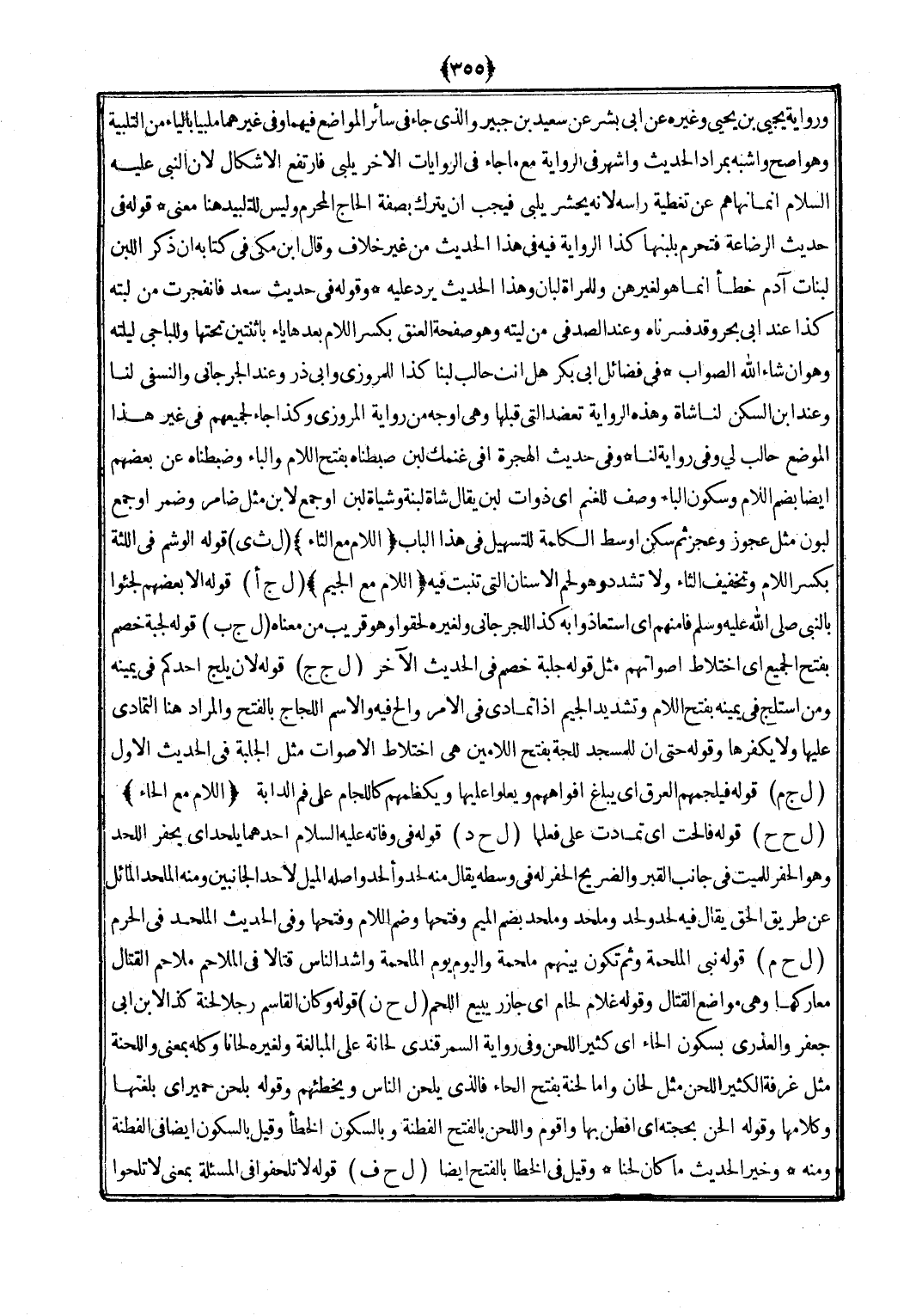 (ل ح ن) قَوْله وَكَانَ الْقَاسِم رجلا لحنة كَذَا لِابْنِ أبي جَعْفَر والعذري بِسُكُون الْحَاء أَي كثير اللّحن وَفِي رِوَايَة السَّمرقَنْدِي لحانة على الْمُبَالغَة وَلغيره لحانا وَكله بِمَعْنى واللحنة مثل غرفَة الكثي اللّحن مثل لحان وَأما لحنة بِفَتْح الْحَاء فَالَّذِي يلحن النَّاس ويخطئهم وَقَوله بلحن حمير أَي بلغتهَا وكلامها وَقَوله أَلحن بحجته أَي أفطن بهَا وأقوم واللحن بِالْفَتْح الفطنة وبالسكون الْخَطَأ وَقيل بِالسُّكُونِ أَيْضا فِي الفطنة وَمِنْه