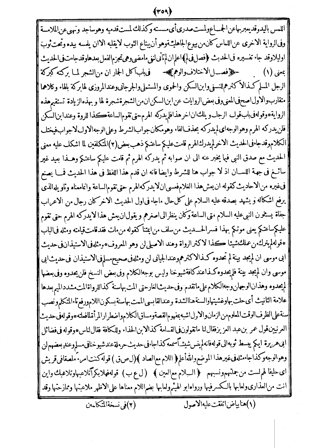 وَقَوله فِي بَاب قَول الرجل وَيلك إِن آخر هَذَا فَلم يُدْرِكهُ الْهَرم حَتَّى تقوم السَّاعَة كَذَا للرواة وَعند ابْن السكن فَلَنْ يُدْرِكهُ الْهَرم وَهُوَ الْوَجْه أَي لم يُدْرِكهُ بِحَذْف الْفَاء وَهُوَ مَكَان جَوَاب الشَّرْط وعَلى الْوَجْه الأول لَا جَوَاب فيختل الْكَلَام وَقد جَاءَ فِي الحَدِيث الآخر لم يدْرك الْهَرم قَامَت عَلَيْكُم سَاعَتكُمْ ذهب بعض المتكلفين لما أشكل عَلَيْهِ معنى الحَدِيث مَعَ صدق النَّبِي فِيمَا يخبر عَنهُ إِلَى أَن صَوَابه ثمَّ يُدْرِكهُ الْهَرم ثمَّ قَامَت عَلَيْكُم سَاعَتكُمْ وَهَذَا بعيد غير سَائِغ فِي جِهَة اللِّسَان إِذْ لَا جَوَاب هُنَا للشّرط وَأَيْضًا فَإِنَّهُ إِن قدم هَذَا اللَّفْظ فِي هَذَا الحَدِيث فَمَا يصنع فِي غَيره من الْأَحَادِيث كَقَوْلِه أَن يَعش هَذَا الْغُلَام فَعَسَى أَن لَا يُدْرِكهُ الْهَرم حَتَّى تقوم السَّاعَة وَإِنَّمَا مَعْنَاهُ وتأويله الَّذِي يرفع أشكاله وَيشْهد بصدقه (صلى الله عَلَيْهِ وَسلم) على كل حَال مَا جَاءَ فِي أول الحَدِيث الآخر كَانَ رجال من الْأَعْرَاب جُفَاة يسْأَلُون النَّبِي (صلى الله عَلَيْهِ وَسلم) مَتى السَّاعَة وَكَانَ ينظر إِلَى أَصْغَرهم يَقُول أَن يَعش هَذَا لَا يُدْرِكهُ الْهَرم حَتَّى تقوم عَلَيْكُم سَاعَتكُمْ يَعْنِي موتكم بِهَذَا فسر الحَدِيث من سلف من أَئِمَّتنَا كَقَوْلِه من مَاتَ فقد قَامَت قِيَامَته وَمثله فِي الْبَاب
