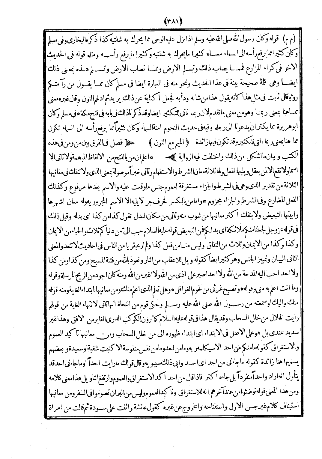 (م م) قَوْله وَكَانَ رَسُول الله (صلى الله عَلَيْهِ وَسلم) إِذا نزل عَلَيْهِ الْوَحْي مِمَّا يُحَرك بِهِ شَفَتَيْه كَذَا ذكره البُخَارِيّ وَفِي مُسلم وَكَانَ كثيرا مِمَّا يرفع رَأسه إِلَى السَّمَاء مَعْنَاهُ كثيرا مَا يُحَرك بِهِ شَفَتَيْه وَكَثِيرًا مَا يرفع رَأسه وَمثله قَوْله فِي الحَدِيث الآخر فِي كِرَاء الْمزَارِع فمما يصاب ذَلِك وتسلم الأَرْض وَمِمَّا تصاب الأَرْض وتسلم هَذِه بِمَعْنى ذَلِك أَيْضا وَهِي كلمة صَحِيحَة بَيِّنَة فِي هَذَا الحَدِيث وَنَحْو مِنْهُ فِي الْعبارَة أَيْضا فِي مُسلم كَانَ مِمَّا يَقُول من رأى مِنْكُم رُؤْيا قَالَ ثَابت فِي مثل هَذَا كَأَنَّهُ يَقُول هَذَا من شَأْنه ودأبه فَجعل الْكِنَايَة عَن ذَلِك يُرِيد ثمَّ أدغم النُّون وَقَالَ غَيره معنى مِمَّا هُنَا بِمَعْنى رُبمَا وَهُوَ من معنى مَا تقدم لِأَن رُبمَا تَأتي للتكثير أَيْضا وَقد ذكرنَا ذَلِك فِي بَابه فِي فتح مَكَّة