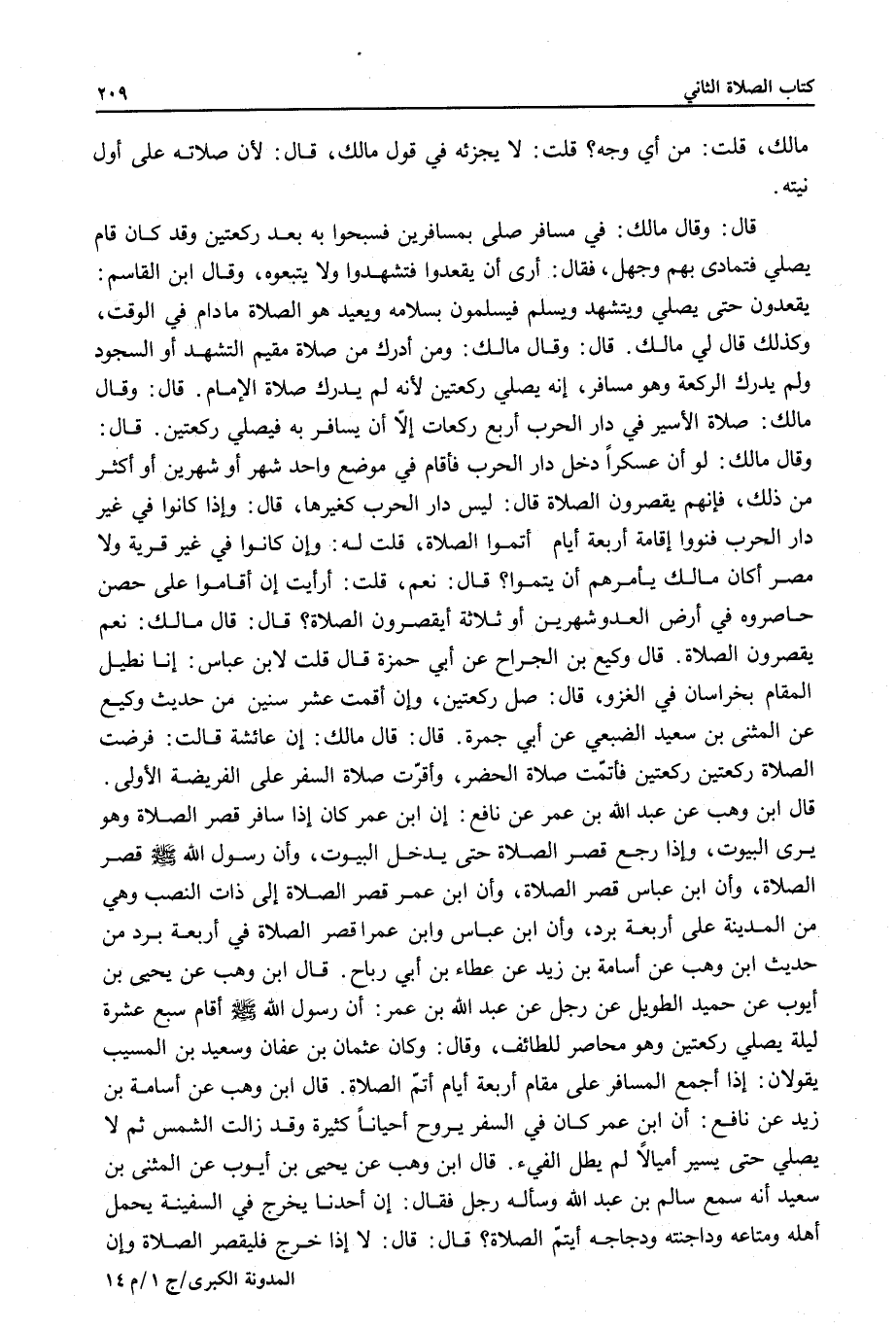 قَالَ: وَقَالَ مَالِكٌ: وَمَنْ أَدْرَكَ مِنْ صَلَاةِ مُقِيمٍ التَّشَهُّدَ أَوْ السُّجُودَ وَلَمْ يُدْرِكْ الرَّكْعَةَ وَهُوَ مُسَافِرٌ، إنَّهُ يُصَلِّي رَكْعَتَيْنِ لِأَنَّهُ لَمْ يُدْرِكْ صَلَاةَ الْإِمَامِ.