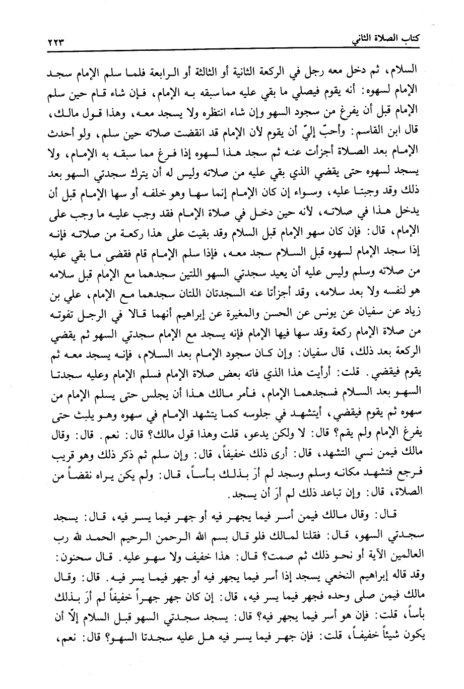 قَالَ: وَقَالَ مَالِكٌ فِيمَنْ أَسَرَّ فِيمَا يُجْهَرُ فِيهِ أَوْ جَهَرَ فِيمَا يُسَرُّ فِيهِ، قَالَ يَسْجُدُ سَجْدَتَيْ السَّهْوِ، قَالَ: فَقُلْنَا لِمَالِكٍ فَلَوْ قَالَ بِسْمِ اللَّهِ الرَّحْمَنِ الرَّحِيمِ {الْحَمْدُ لِلَّهِ رَبِّ الْعَالَمِينَ} [الفاتحة: 2] الْآيَةَ. أَوْ نَحْوَ ذَلِكَ ثُمَّ صَمَتَ؟