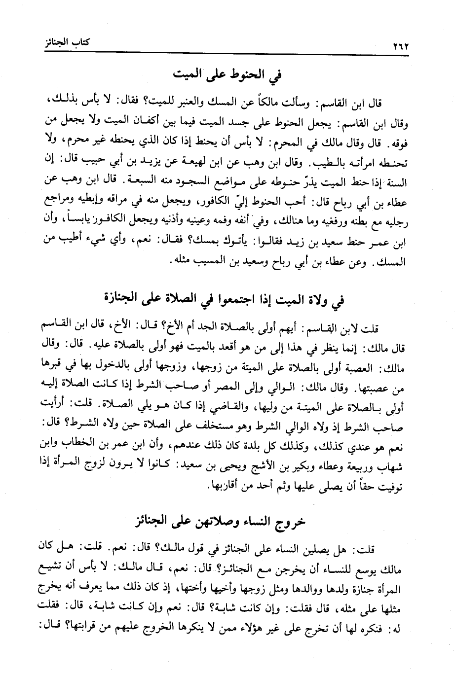 ِ قُلْتُ: هَلْ يُصَلِّينَ النِّسَاءُ عَلَى الْجَنَائِزِ فِي قَوْلِ مَالِكٍ؟