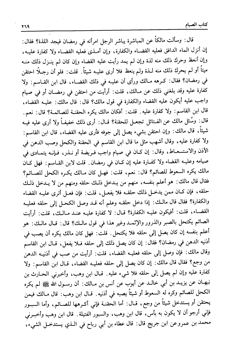 قُلْتُ لِابْنِ الْقَاسِمِ: فَهَلْ كَانَ مَالِكٌ يَكْرَهُ السَّعُوطَ لِلصَّائِمِ؟