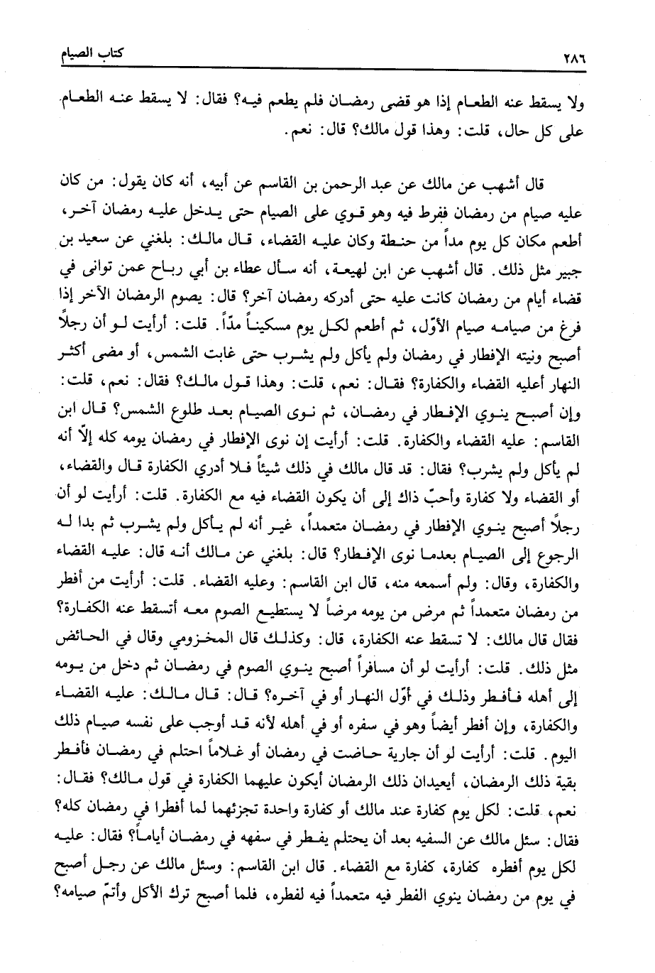 قُلْتُ: لِكُلِّ يَوْمٍ كَفَّارَةٌ عِنْدَ مَالِكٍ أَوْ كَفَّارَةٌ وَاحِدَةٌ تُجْزِئُهُمَا لِمَا أَفْطَرَا فِي رَمَضَانَ كُلِّهِ؟ فَقَالَ: سُئِلَ مَالِكٌ عَنْ السَّفِيهِ بَعْدَ أَنْ يَحْتَلِمَ يُفْطِرُ فِي سَفَهِهِ فِي رَمَضَانَ أَيَّامًا؟ فَقَالَ: عَلَيْهِ لِكُلِّ يَوْمٍ أَفْطَرَهُ كَفَّارَةٌ، كَفَّارَةٌ مَعَ الْقَضَاءِ.
