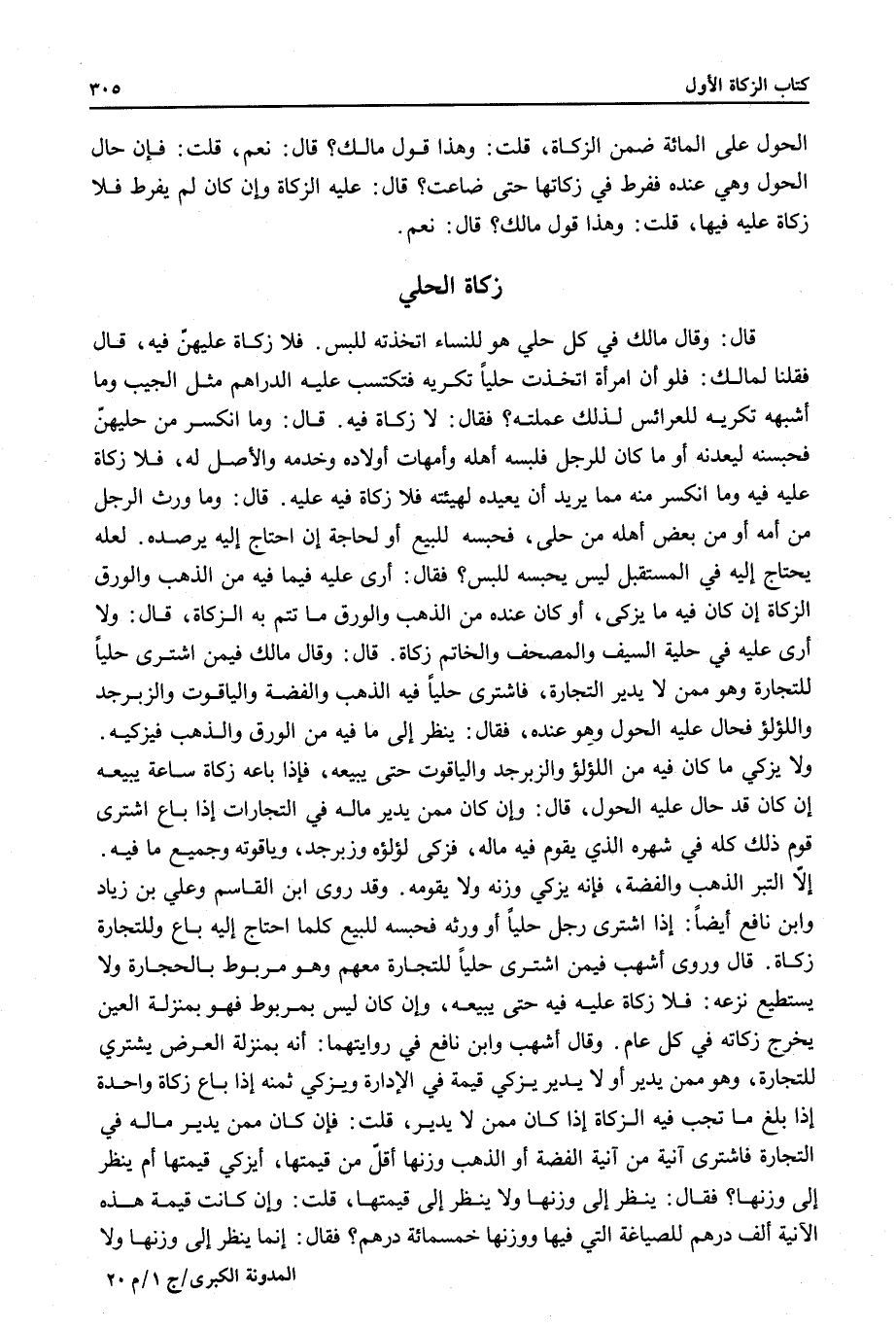 ِّ قَالَ: وَقَالَ مَالِكٌ فِي كُلِّ حُلِيٍّ هُوَ لِلنِّسَاءِ اتَّخَذَتْهُ لِلُّبْسِ. فَلَا زَكَاةَ عَلَيْهِنَّ فِيهِ، قَالَ فَقُلْنَا لِمَالِكٍ: فَلَوْ أَنَّ امْرَأَةً اتَّخَذَتْ حُلِيًّا تُكْرِيهِ فَتَكْتَسِبُ عَلَيْهِ الدَّرَاهِمَ مِثْلَ الْجَيْبِ وَمَا أَشْبَهَهُ تُكْرِيهِ لِلْعَرَائِسِ لِذَلِكَ عَمِلْتُهُ؟ فَقَالَ: لَا زَكَاةَ فِيهِ.