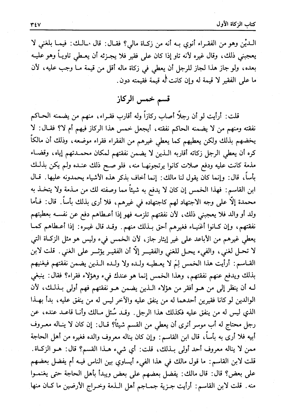 قُلْتُ لِابْنِ الْقَاسِمِ: أَرَأَيْتَ جِزْيَةَ جَمَاجِمِ أَهْلِ الذِّمَّةِ وَخَرَاجَ الْأَرَضِينَ مَا كَانَ مِنْهَا