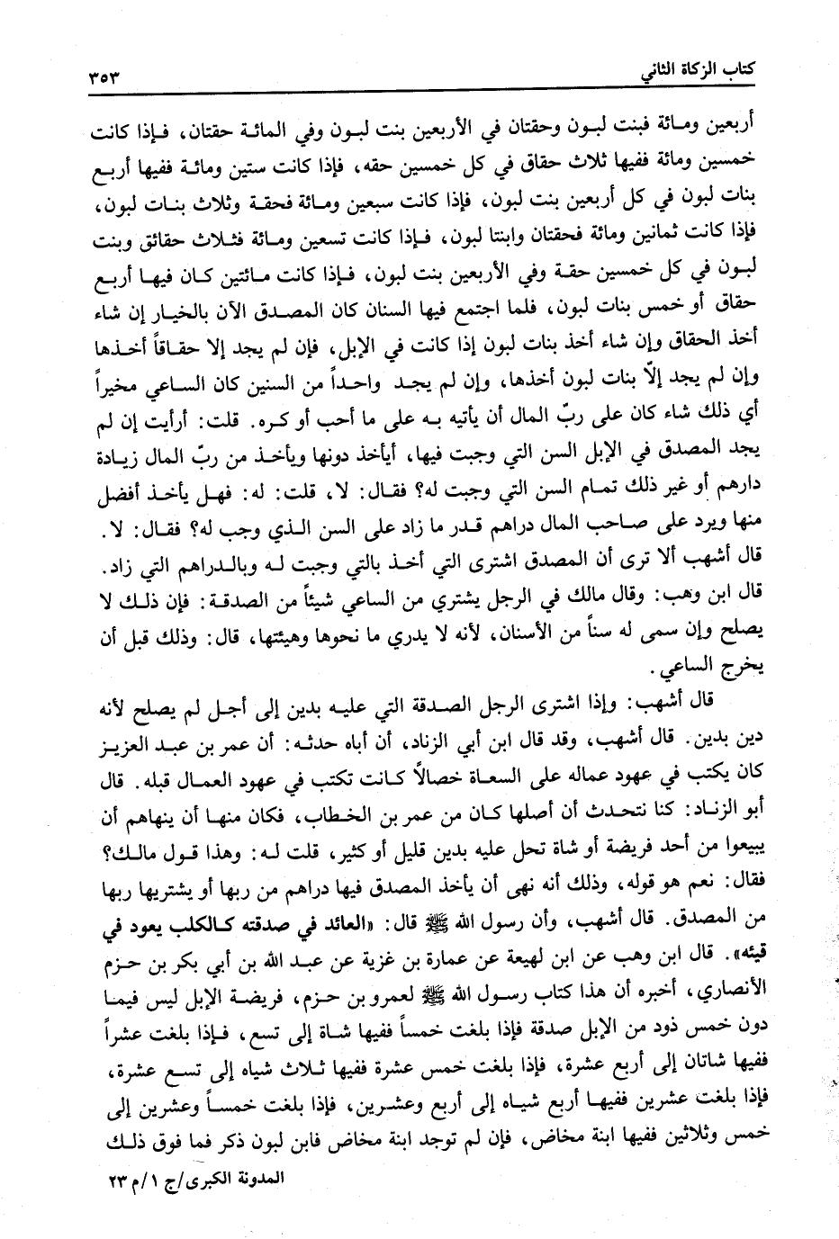 قُلْتُ لَهُ: وَهَذَا قَوْلُ مَالِكٍ؟ فَقَالَ: نَعَمْ هُوَ قَوْلُهُ، وَذَلِكَ أَنَّهُ نَهَى أَنْ يَأْخُذَ الْمُصَدِّقُ فِيهَا دَرَاهِمَ مِنْ رَبِّهَا أَوْ يَشْتَرِيَهَا رَبُّهَا مِنْ الْمُصَدِّقِ.