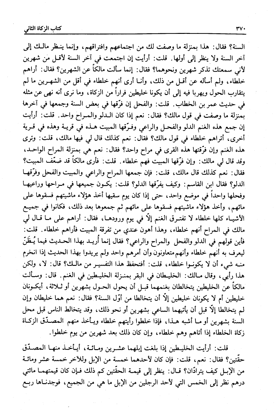 قَالَ: لَا، وَلَكِنْ هَذَا رَأْيِي، وَقَالَ مَالِكٌ: الْخَلِيطَانِ فِي الْبَقَرِ بِمَنْزِلَةِ الْخَلِيطَيْنِ، فِي الْغَنَمِ.