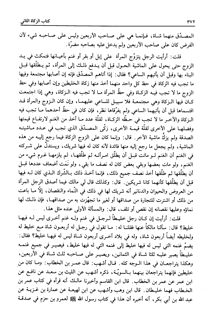 قَالَ أَشْهَبُ: قَالَ عُمَرُ بْنُ الْخَطَّابِ: وَمَا كَانَ مِنْ خَلِيطَيْنِ فَإِنَّهُمَا يَتَرَاجَعَانِ بَيْنَهُمَا بِالسَّوِيَّةِ، ذَكَرَهُ أَشْهَبُ عَنْ اللَّيْثِ بْنِ سَعْدٍ عَنْ نَافِعٍ عَنْ ابْنِ عُمَرَ عَنْ عُمَرَ بْنِ الْخَطَّابِ قَالَ ابْنُ الْقَاسِمِ وَأَخْبَرَنَا مَالِكٌ أَنَّهُ قَرَأَهُ فِي كِتَابِ عُمَرَ بْنِ الْخَطَّابِ فَهُمَا خَلِيطَانِ.