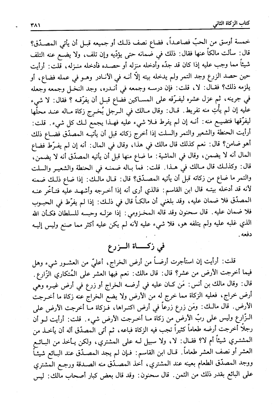 قَالَ: وَقَالَ مَالِكُ بْنُ أَنَسٍ: مَنْ كَانَ عَلَيْهِ فِي أَرْضِهِ الْخَرَاجُ أَوْ زَرَعَ فِي أَرْضِ غَيْرِهِ وَهِيَ أَرْضُ خَرَاجٍ، فَعَلَيْهِ الزَّكَاةُ مِمَّا خَرَجَ لَهُ مِنْ الْأَرْضِ وَلَا يَضَعُ الْخَرَاجُ عَنْهُ زَكَاةَ مَا أَخْرَجَتْ الْأَرْضُ.