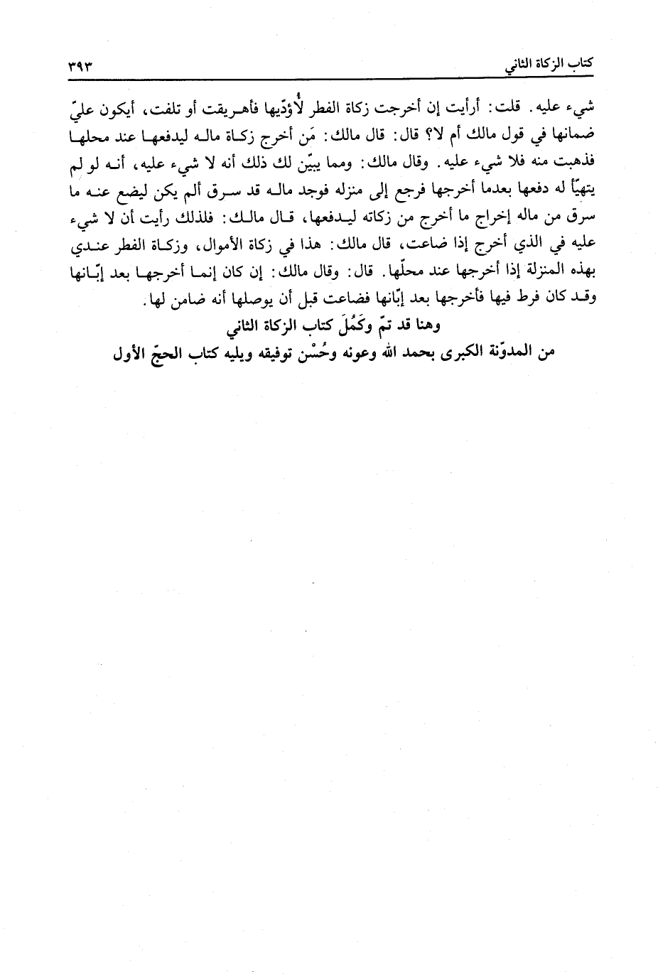 شَيْءَ عَلَيْهِ. قُلْتُ: أَرَأَيْتَ إنْ أَخَرَجْت زَكَاةَ الْفِطْرِ لِأُؤَدِّيَهَا فَأُهْرِيقَتْ أَوْ تَلِفَتْ، أَيَكُونُ عَلَيَّ ضَمَانُهَا فِي قَوْلِ مَالِكٍ أَمْ لَا؟