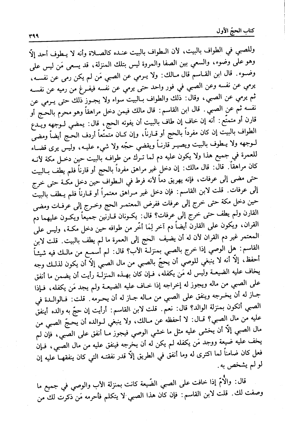 قُلْتُ لِابْنِ الْقَاسِمِ: هَلْ الْوَصِيُّ إذَا خَرَجَ بِالصَّبِيِّ بِمَنْزِلَةِ الْأَبِ؟ قَالَ: لَمْ أَسْمَعْ مِنْ مَالِكٍ فِيهِ شَيْئًا أَحْفَظُ، إلَّا أَنَّهُ لَا يَنْبَغِي لِلْوَصِيِّ أَنْ يَحُجَّ بِالصَّبِيِّ مِنْ مَالِ الصَّبِيِّ إلَّا أَنْ يَكُونَ لِذَلِكَ وَجْهٌ يَخَافُ عَلَيْهِ الضَّيْعَةَ وَلَيْسَ لَهُ مَنْ يَكْفُلُهُ، فَإِنْ كَانَ بِهَذِهِ الْمَنْزِلَةِ رَأَيْتُ أَنْ يَضْمَنَ مَا أُنْفِقَ عَلَى الصَّبِيِّ مِنْ مَالِهِ وَيَجُوزُ لَهُ إخْرَاجُهُ إذَا خَافَ عَلَيْهِ الضَّيْعَةَ وَلَمْ يَجِدْ مَنْ يَكْفُلُهُ، فَإِذَا جَازَ لَهُ أَنْ يَخْرُجَهُ وَيُنْفِقَ عَلَى الصَّبِيِّ مِنْ مَالِهِ جَازَ لَهُ أَنْ يُحْرِمَهُ.