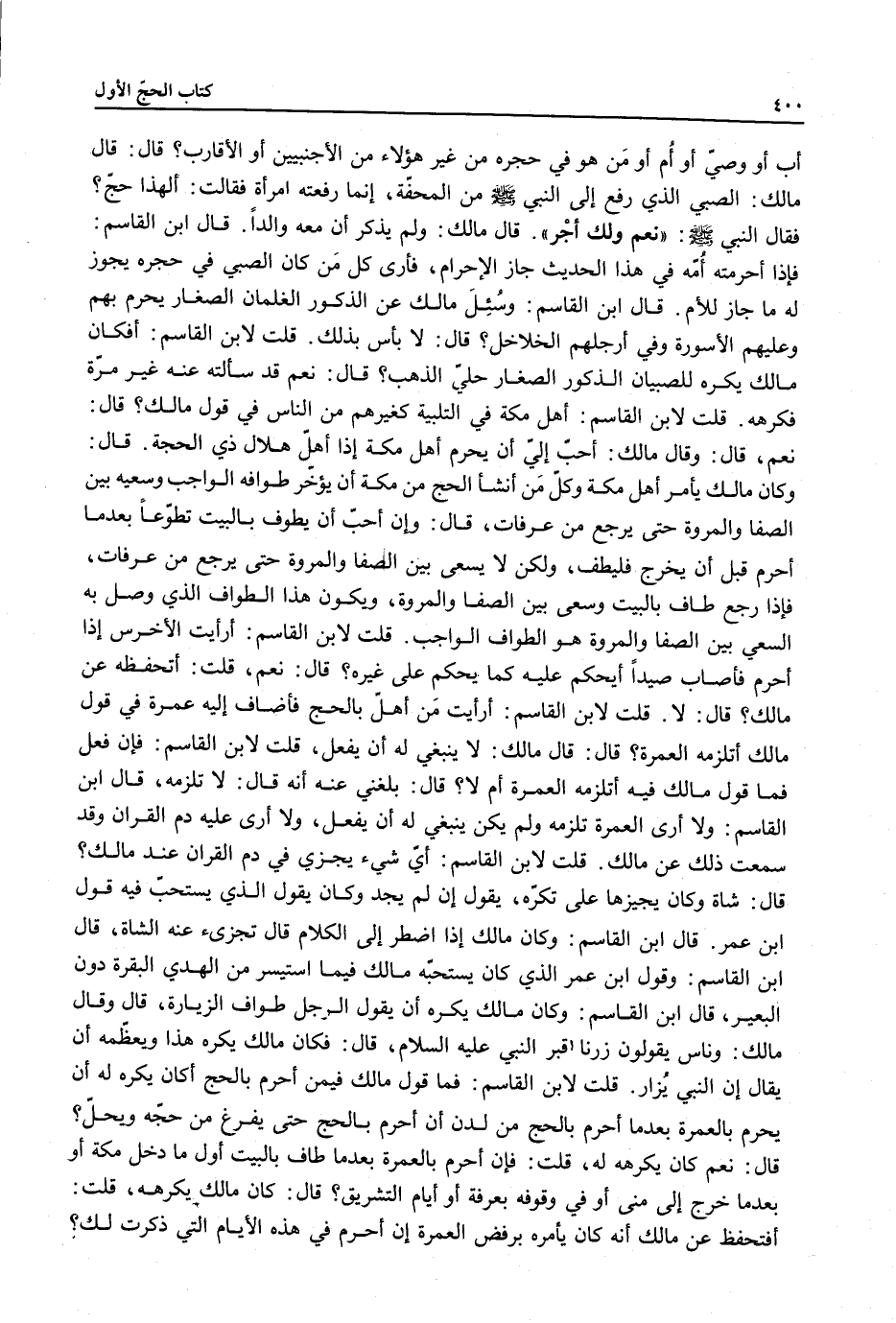 قَالَ: قَالَ مَالِكٌ: الصَّبِيُّ الَّذِي رُفِعَ إلَى النَّبِيِّ - صَلَّى اللَّهُ عَلَيْهِ وَسَلَّمَ - مِنْ الْمِحَفَّةِ، إنَّمَا رَفَعْتُهُ امْرَأَةٌ «فَقَالَتْ: أَلِهَذَا حَجٌّ؟ فَقَالَ النَّبِيُّ - صَلَّى اللَّهُ عَلَيْهِ وَسَلَّمَ -: نَعَمْ وَلَكِ أَجْرٌ.» قَالَ مَالِكٌ: وَلَمْ يُذْكَرْ أَنَّ مَعَهُ وَالِدًا. قَالَ ابْنُ الْقَاسِمِ: فَإِذَا أَحْرَمَتْهُ أُمُّهُ فِي هَذَا الْحَدِيثِ جَازَ الْإِحْرَامُ، فَأَرَى كُلَّ مَنْ كَانَ الصَّبِيُّ فِي حِجْرِهِ يَجُوزُ لَهُ مَا جَازَ لِلْأُمِّ.