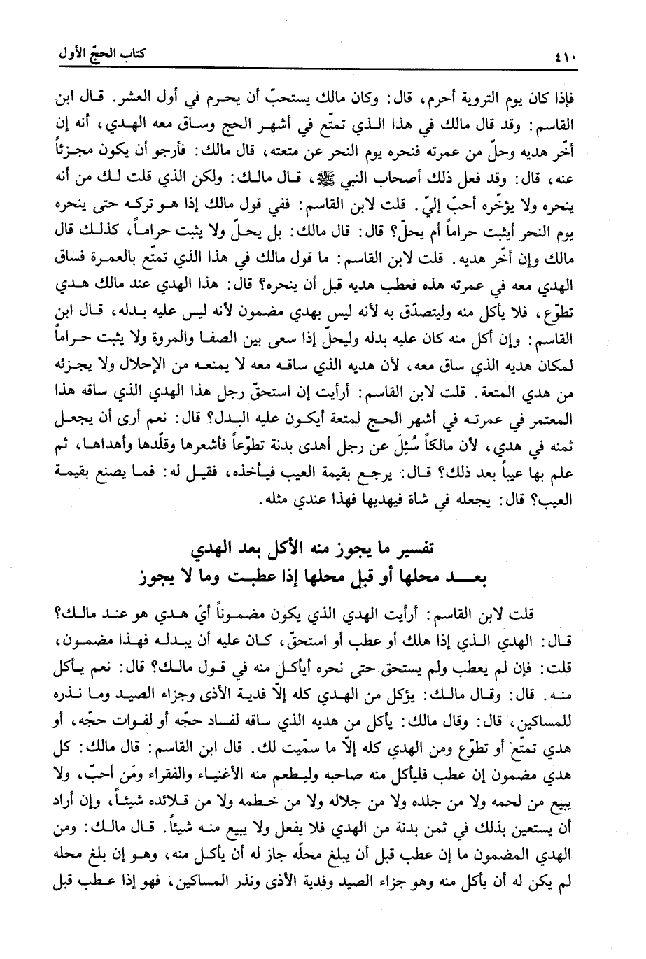 قُلْتُ لِابْنِ الْقَاسِمِ: فَفِي قَوْلِ مَالِكٍ إذَا هُوَ تَرَكَهُ حَتَّى يَنْحَرَهُ يَوْمَ النَّحْرِ أَيَثْبُتُ حَرَامًا أَمْ يَحِلُّ؟