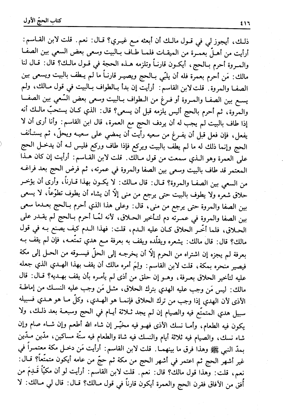 قُلْت لِابْنِ الْقَاسِمِ: أَرَأَيْتَ إنْ كَانَ هَذَا الْمُعْتَمِرُ قَدْ طَافَ بِالْبَيْتِ وَسَعَى بَيْنَ الصَّفَا وَالْمَرْوَةِ فِي عُمْرَتِهِ، ثُمَّ فُرِضَ الْحَجُّ بَعْدَ فَرَاغِهِ مِنْ السَّعْيِ بَيْنَ الصَّفَا وَالْمَرْوَةِ؟