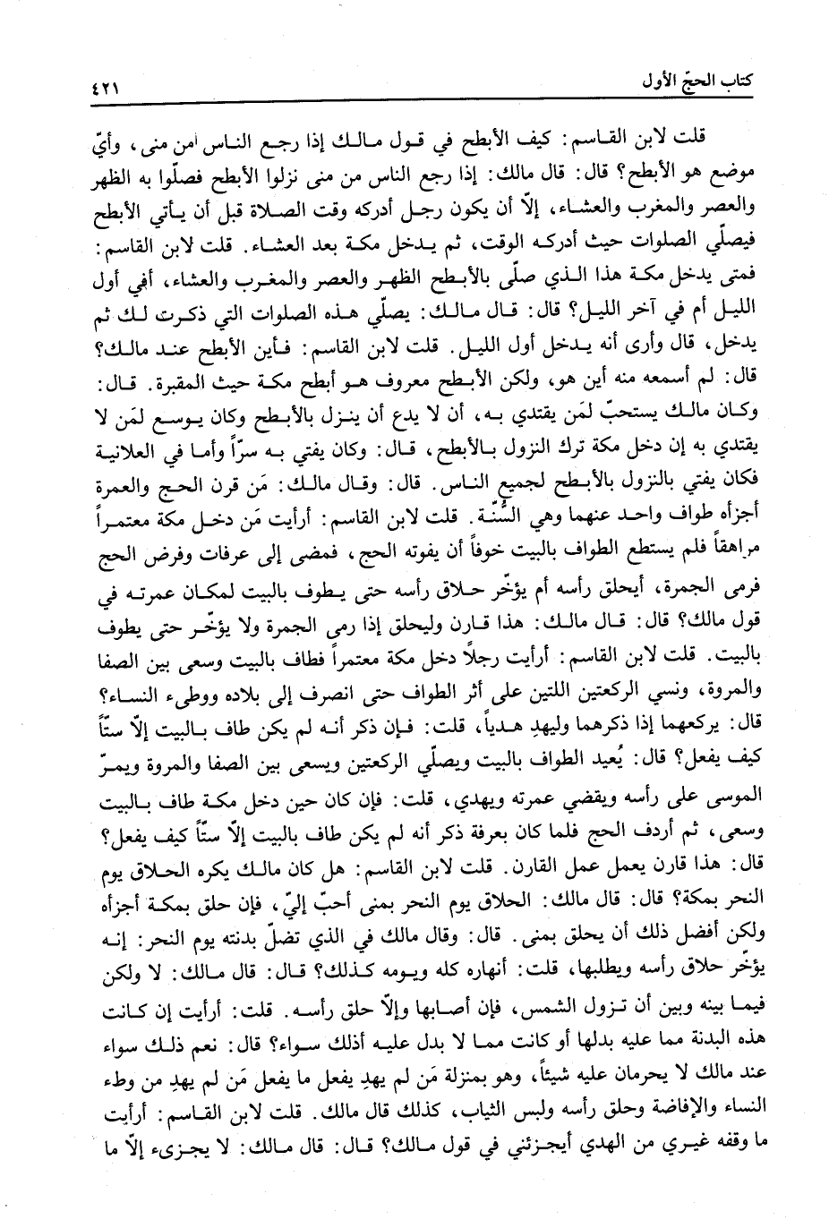 قَالَ: قَالَ مَالِكٌ يُصَلِّي هَذِهِ الصَّلَوَاتِ الَّتِي ذَكَرْتُ لَكَ ثُمَّ يَدْخُلُ، قَالَ: وَأَرَى أَنَّهُ يَدْخُلُ أَوَّلَ اللَّيْلِ. قُلْت لِابْنِ الْقَاسِمِ: فَأَيْنَ الْأَبْطَحُ عِنْدَ مَالِكٍ؟