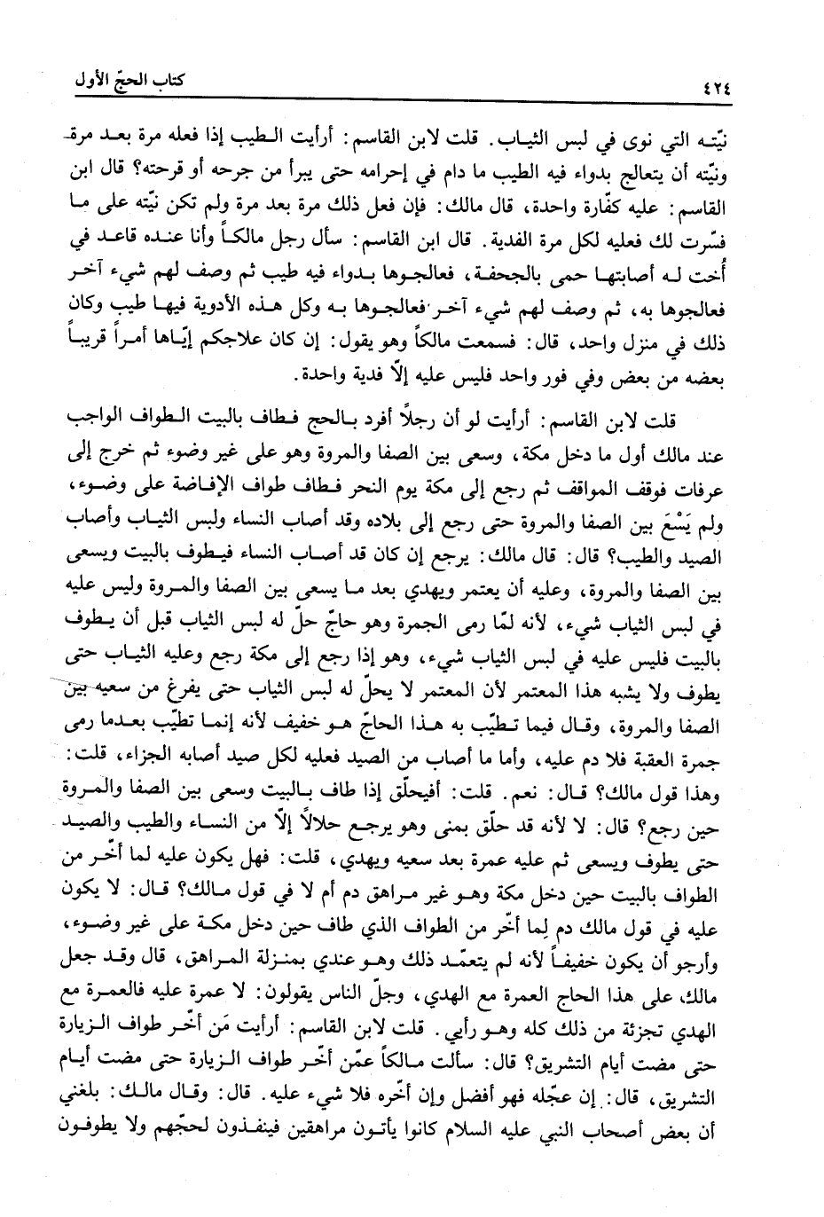 قَالَ: قَالَ مَالِكٌ: يَرْجِعُ إنْ كَانَ قَدْ أَصَابَ النِّسَاءَ فَيَطُوفُ بِالْبَيْتِ وَيَسْعَى بَيْنَ الصَّفَا وَالْمَرْوَةِ، وَعَلَيْهِ أَنْ يَعْتَمِرَ وَيَهْدِيَ بَعْدَمَا يَسْعَى بَيْنَ الصَّفَا وَالْمَرْوَةِ وَلَيْسَ عَلَيْهِ فِي لِبْسِ الثِّيَابِ شَيْءٌ، لِأَنَّهُ لَمَّا رَمَى الْجَمْرَةَ وَهُوَ حَاجٌّ حَلَّ لَهُ لِبْسُ الثِّيَابِ قَبْلَ أَنْ يَطُوفَ بِالْبَيْتِ فَلَيْسَ عَلَيْهِ فِي لِبْسِ الثِّيَابِ شَيْءٌ، وَهُوَ إذَا رَجَعَ إلَى مَكَّةَ رَجَعَ وَعَلَيْهِ الثِّيَابُ حَتَّى يَطُوفَ وَلَا يُشْبِهُ هَذَا الْمُعْتَمِرَ لِأَنَّ الْمُعْتَمِرَ لَا يَحِلُّ لَهُ لِبْسُ الثِّيَابِ حَتَّى يَفْرُغَ مِنْ سَعْيِهِ بَيْنَ الصَّفَا وَالْمَرْوَةِ، وَقَالَ فِيمَا تَطَيَّبَ بِهِ هَذَا الْحَاجُّ هُوَ خَفِيفٌ لِأَنَّهُ إنَّمَا تَطَيَّبَ بَعْدَمَا رَمَى جَمْرَةَ الْعَقَبَةِ فَلَا دَمَ عَلَيْهِ، وَأَمَّا مَا أَصَابَ مِنْ الصَّيْدِ فَعَلَيْهِ لِكُلِّ صَيْدٍ أَصَابَهُ الْجَزَاءُ، قُلْت: وَهَذَا قَوْلُ مَالِكٍ؟