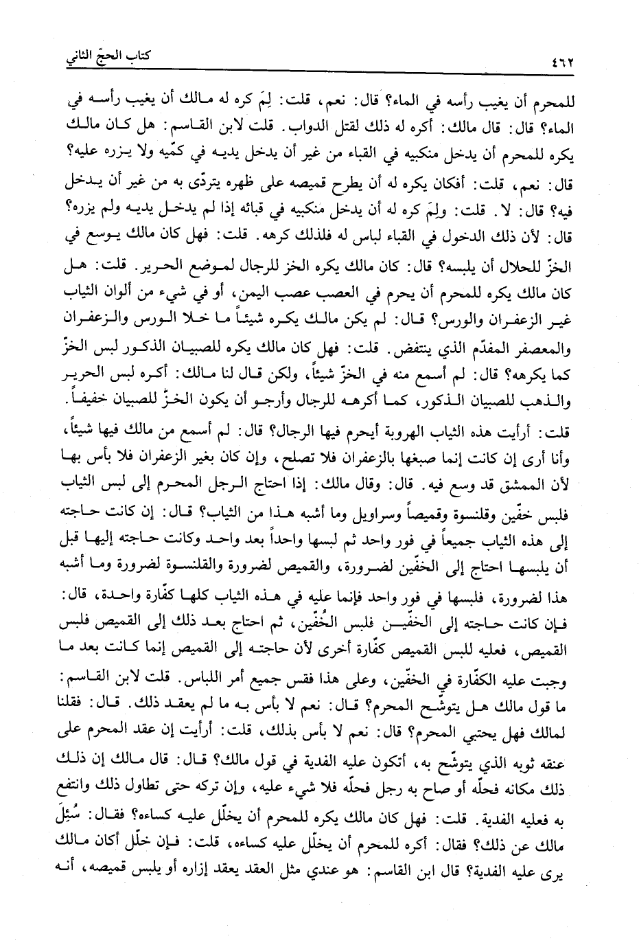 قَالَ: لِأَنَّ ذَلِكَ الدُّخُولَ فِي الْقَبَاءِ لِبَاسٌ لَهُ فَلِذَلِكَ كَرِهَهُ. قُلْت: فَهَلْ كَانَ مَالِكٌ يُوَسِّعُ فِي الْخَزِّ لِلْحَلَالِ أَنْ يَلْبَسَهُ؟