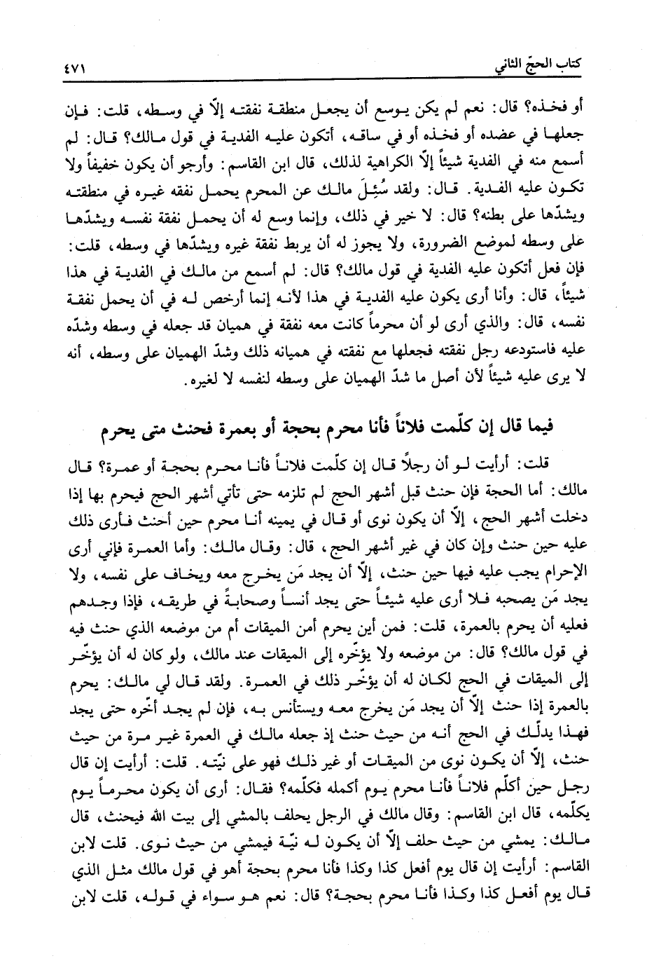 قُلْت: أَرَأَيْتَ إنْ قَالَ رَجُلٌ حِينَ أُكَلِّمُ فُلَانًا فَأَنَا مُحْرِمٌ يَوْمَ أُكَلِّمُهُ فَكَلَّمَهُ؟ فَقَالَ: أَرَى أَنْ يَكُونَ مُحْرِمًا يَوْمَ يُكَلِّمُهُ.
