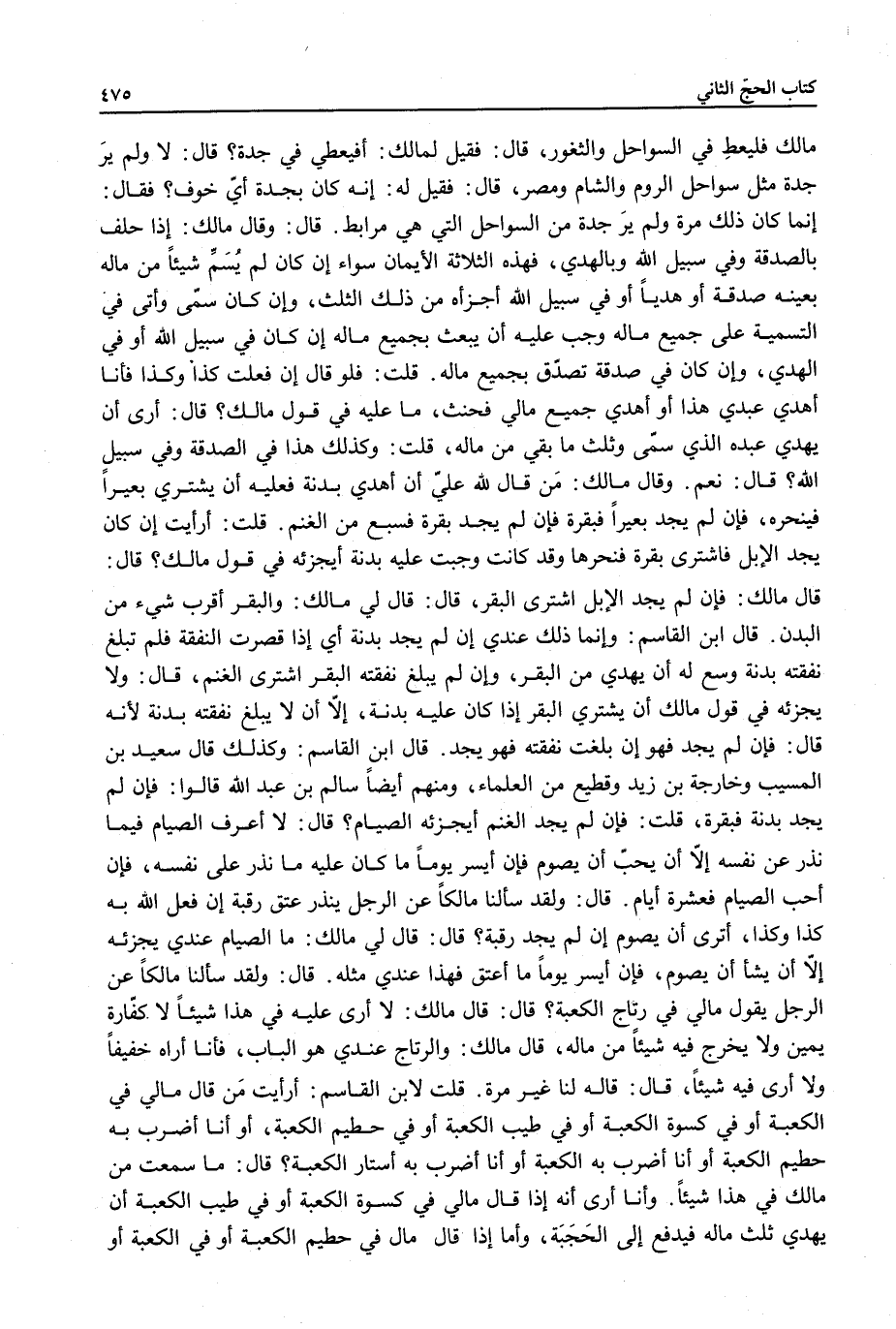 قُلْت لِابْنِ الْقَاسِمِ: أَرَأَيْت مَنْ قَالَ مَالِي فِي الْكَعْبَةِ أَوْ فِي كِسْوَةِ الْكَعْبَةِ أَوْ فِي طِيبِ الْكَعْبَةِ أَوْ فِي حَطِيمِ الْكَعْبَةِ، أَوْ أَنَا أَضْرِبُ بِهِ حَطِيمَ الْكَعْبَةِ أَوْ أَنَا أَضْرِبُ بِهِ الْكَعْبَةَ أَوْ أَنَا أَضْرِبُ بِهِ أَسْتَارَ الْكَعْبَةِ؟