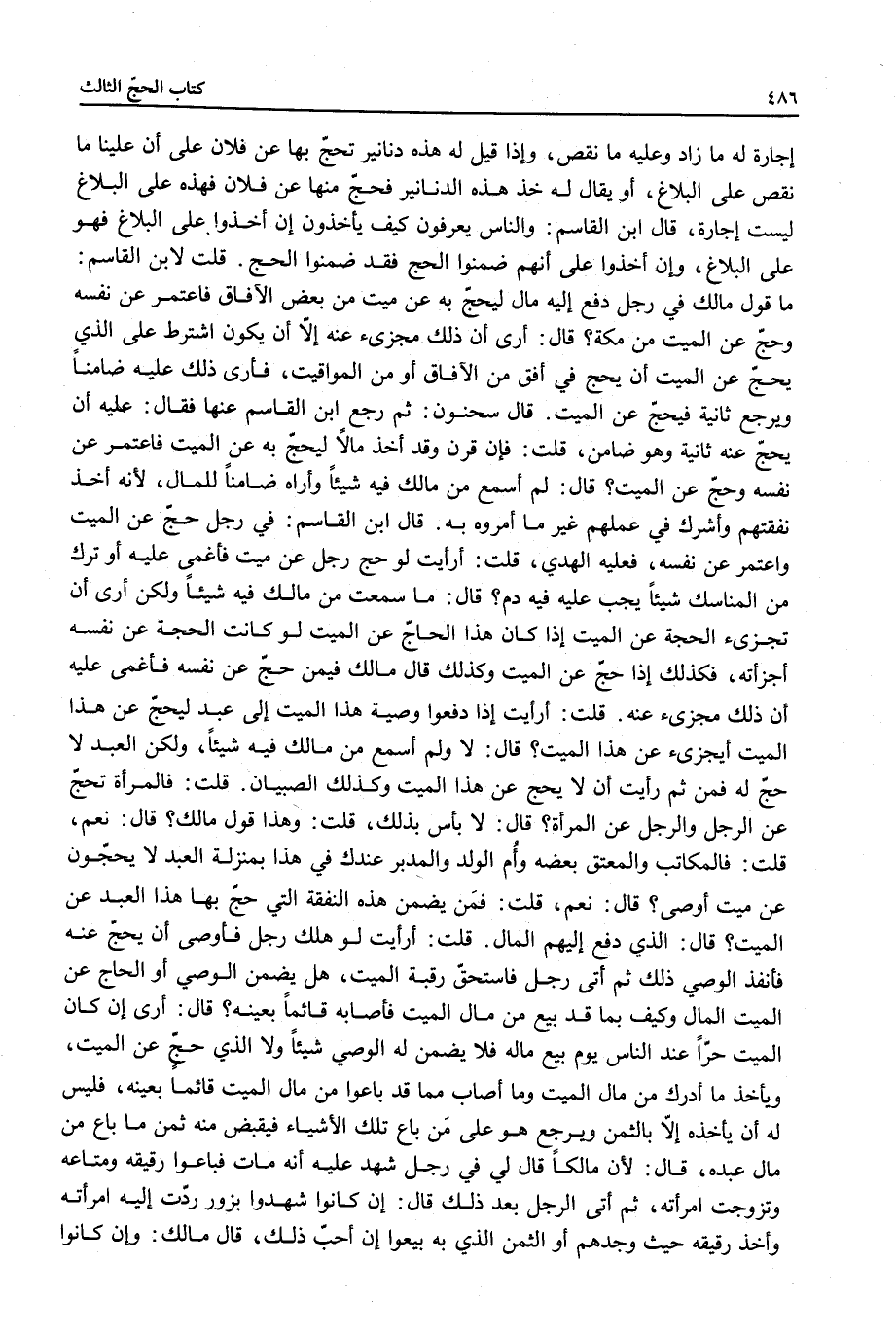 قَالَ: لَا وَلَمْ أَسْمَعْ مِنْ مَالِكٍ فِيهِ شَيْئًا، وَلَكِنَّ الْعَبْدَ لَا حَجَّ لَهُ فَمِنْ ثَمَّ رَأَيْت أَنْ لَا يَحُجَّ عَنْ هَذَا الْمَيِّتِ وَكَذَلِكَ الصِّبْيَانُ. قُلْت: فَالْمَرْأَةُ تَحُجُّ عَنْ الرَّجُلِ وَالرَّجُلُ عَنْ الْمَرْأَةِ؟