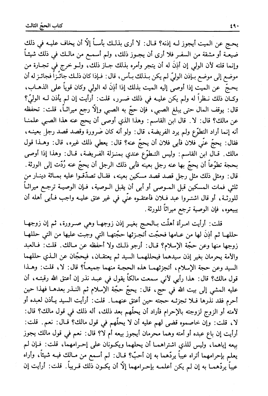 قُلْت: أَرَأَيْت السَّيِّدَ يَأْذَنُ لِعَبْدِهِ أَوْ لِأَمَتِهِ أَوْ الزَّوْجَ لِزَوْجَتِهِ بِالْإِحْرَامِ فَأَرَادَ أَنْ يُحِلَّهُمْ بَعْدَ ذَلِكَ، أَلَهُ ذَلِكَ فِي قَوْلِ مَالِكٍ؟