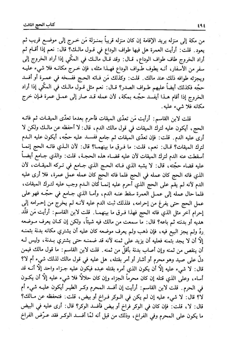 قُلْت لِابْنِ الْقَاسِمِ: أَرَأَيْت مَنْ تَعَدَّى الْمِيقَاتَ فَأَحْرَمَ بَعْدَمَا تَعَدَّى الْمِيقَاتَ ثُمَّ فَاتَهُ الْحَجُّ، أَيَكُونُ عَلَيْهِ لِتَرْكِ الْمِيقَاتِ فِي قَوْلِ مَالِكٍ الدَّمُ، قَالَ: لَا أَحْفَظُهُ عَنْ مَالِكٍ وَلَكِنْ لَا أَرَى عَلَيْهِ الدَّمَ قُلْت: فَإِنْ تَعَدَّى الْمِيقَاتَ ثُمَّ جَامَعَ فَفَسَدَ عَلَيْهِ حَجُّهُ، أَيَكُونُ عَلَيْهِ الدَّمُ لِتَرْكِ الْمِيقَاتِ؟
