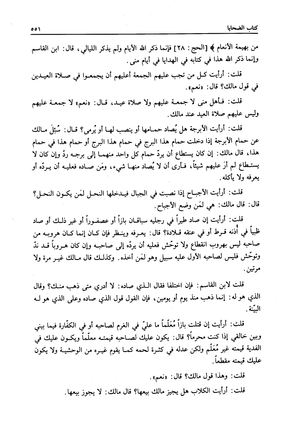 مِنْ بَهِيمَةِ الْأَنْعَامِ} [الحج: 28] فَإِنَّمَا ذَكَرَ اللَّهُ الْأَيَّامَ وَلَمْ يَذْكُرْ اللَّيَالِيَ، قَالَ ابْنُ الْقَاسِمِ وَإِنَّمَا ذَكَرَ اللَّهُ هَذَا فِي كِتَابِهِ فِي الْهَدَايَا فِي أَيَّامِ مِنًى.