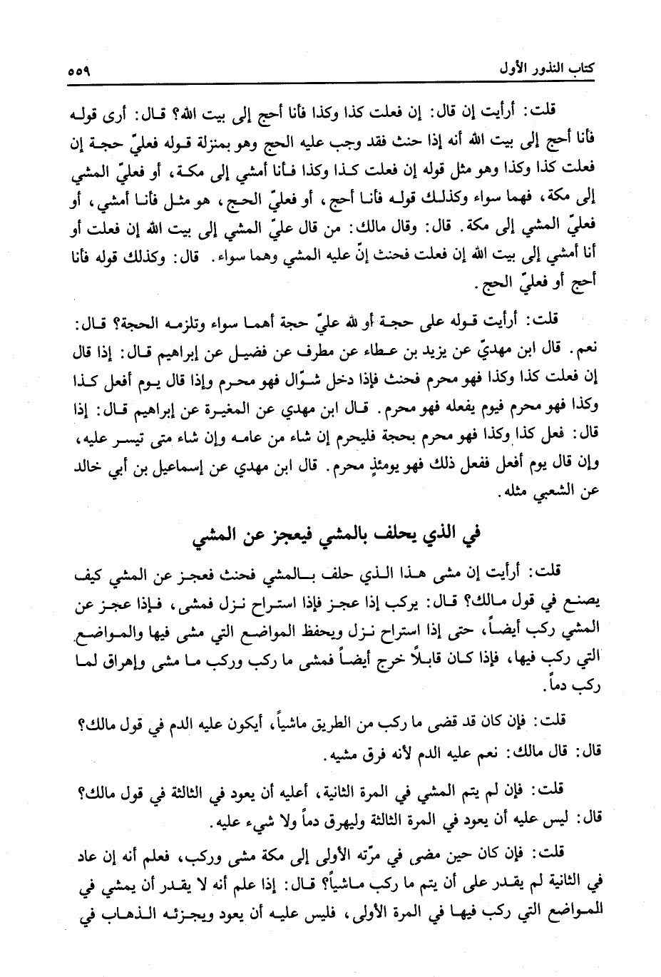 ِ قُلْتُ: أَرَأَيْتَ إنْ مَشَى هَذَا الَّذِي حَلَفَ بِالْمَشْيِ فَحَنِثَ فَعَجَزَ عَنْ الْمَشْيِ كَيْفَ يَصْنَعُ فِي قَوْلِ مَالِكٍ؟