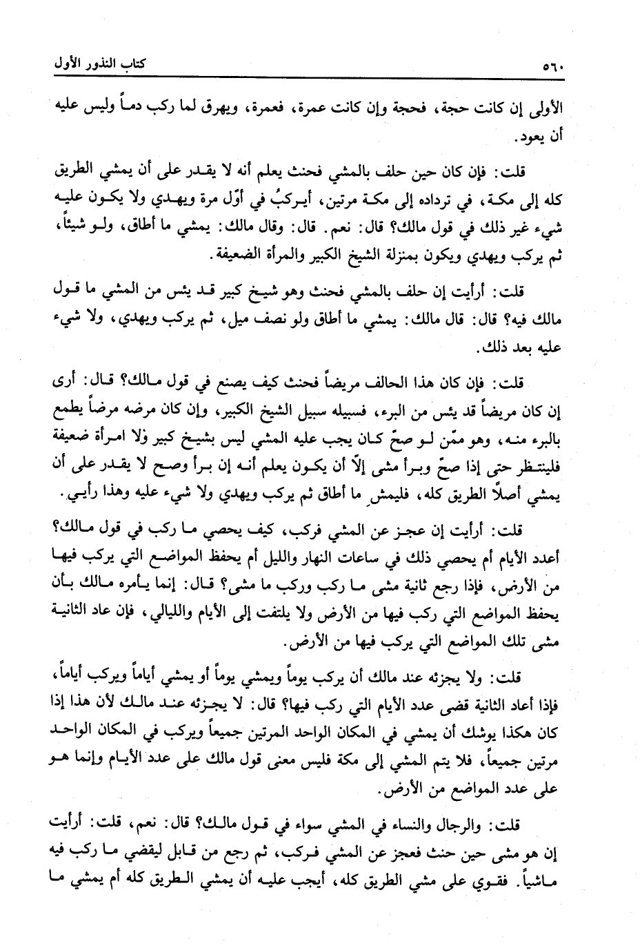 قُلْتُ: أَرَأَيْتَ إنْ عَجَزَ عَنْ الْمَشْيِ فَرَكِبَ، كَيْفَ يُحْصِي مَا رَكِبَ فِي قَوْلِ مَالِكٍ؟ أَعَدَدُ الْأَيَّامِ أَمْ يُحْصِي ذَلِكَ فِي سَاعَاتِ النَّهَارِ وَاللَّيْلِ أَمْ يَحْفَظُ الْمَوَاضِعَ الَّتِي يَرْكَبُ فِيهَا مِنْ الْأَرْضِ، فَإِذَا رَجَعَ ثَانِيَةً مَشَى مَا رَكِبَ وَرَكِبَ مَا مَشَى؟