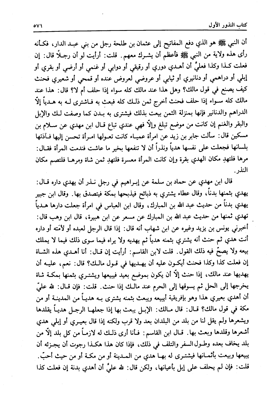 قُلْتُ لِابْنِ الْقَاسِمِ: أَرَأَيْتَ إنْ قَالَ: أَنَا أُهْدِي هَذِهِ الشَّاةَ إنْ فَعَلْت كَذَا وَكَذَا فَحَنِثَ أَيَكُونُ عَلَيْهِ أَنْ يُهْدِيَهَا فِي قَوْلِ مَالِكٍ؟