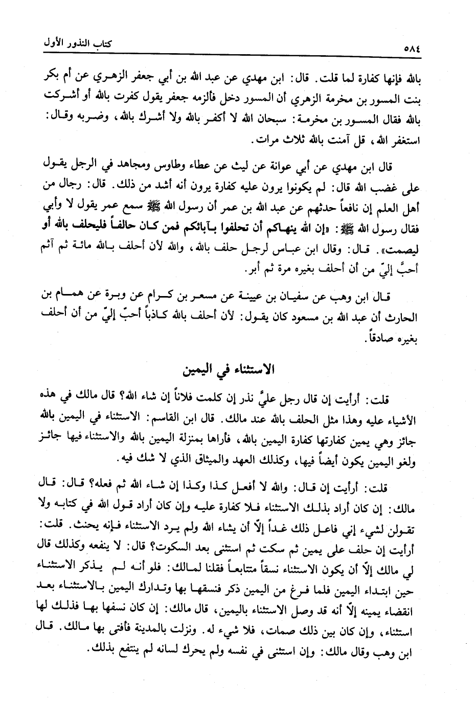 ِ قُلْتُ: أَرَأَيْتَ إنْ قَالَ رَجُلٌ عَلَيَّ نَذْرٌ إنْ كَلَّمْتُ فُلَانًا إنْ شَاءَ اللَّهُ؟