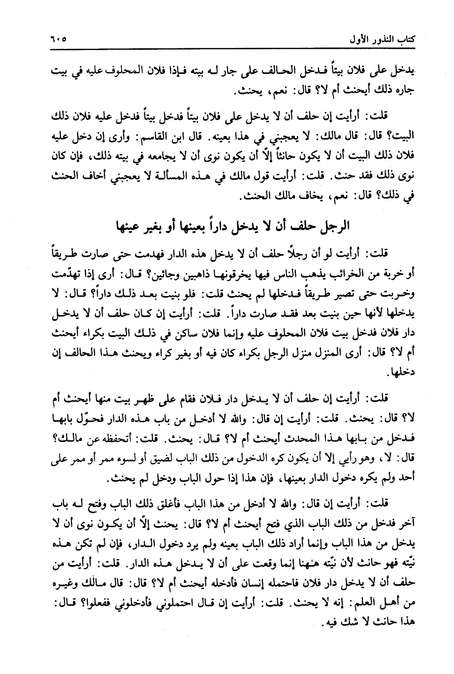 قُلْتُ: أَرَأَيْتَ لَوْ أَنَّ رَجُلًا حَلَفَ أَنْ لَا يَدْخُلَ هَذِهِ الدَّارَ فَهُدِمَتْ حَتَّى صَارَتْ طَرِيقًا أَوْ خَرِبَةً مِنْ الْخَرَائِبِ يَذْهَبُ النَّاسُ فِيهَا يَخْرِقُونَهَا ذَاهِبِينَ وَجَائِينَ؟