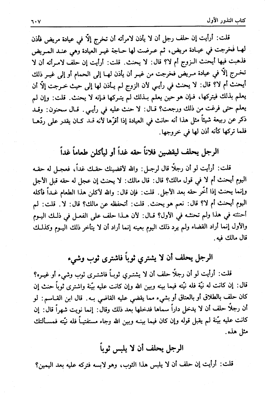ٍ قُلْتُ: أَرَأَيْتَ لَوْ أَنَّ رَجُلًا حَلَفَ أَنْ لَا يَشْتَرِيَ ثَوْبًا فَاشْتَرَى ثَوْبَ وَشْيٍ أَوْ غَيْرَهُ؟