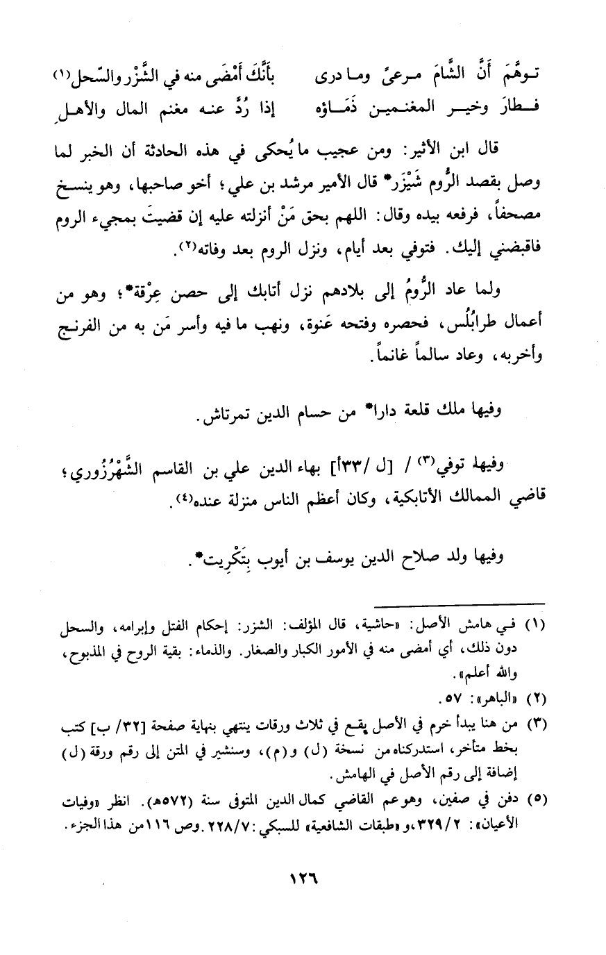 وفيهَا توفى بهاء الدّين عَليّ بن الْقَاسِم الشهرزوري قَاضِي الممالك الأتابكية وَكَانَ أعظم النَّاس منزلَة عِنْده