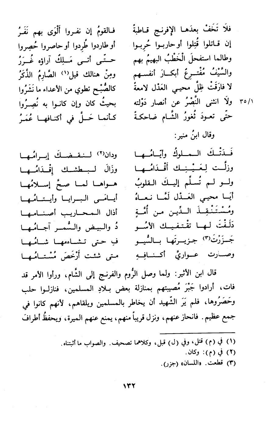 (جزرت جزيرتها بِالسُّيُوفِ ... حَتَّى تشاءمها شامها)