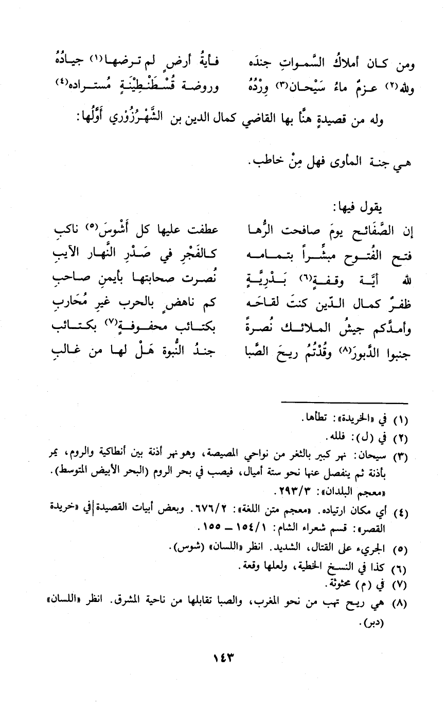 (وَللَّه عزم مَاء سيحان ورده ... وروضه قسطنطينة مستراده)
