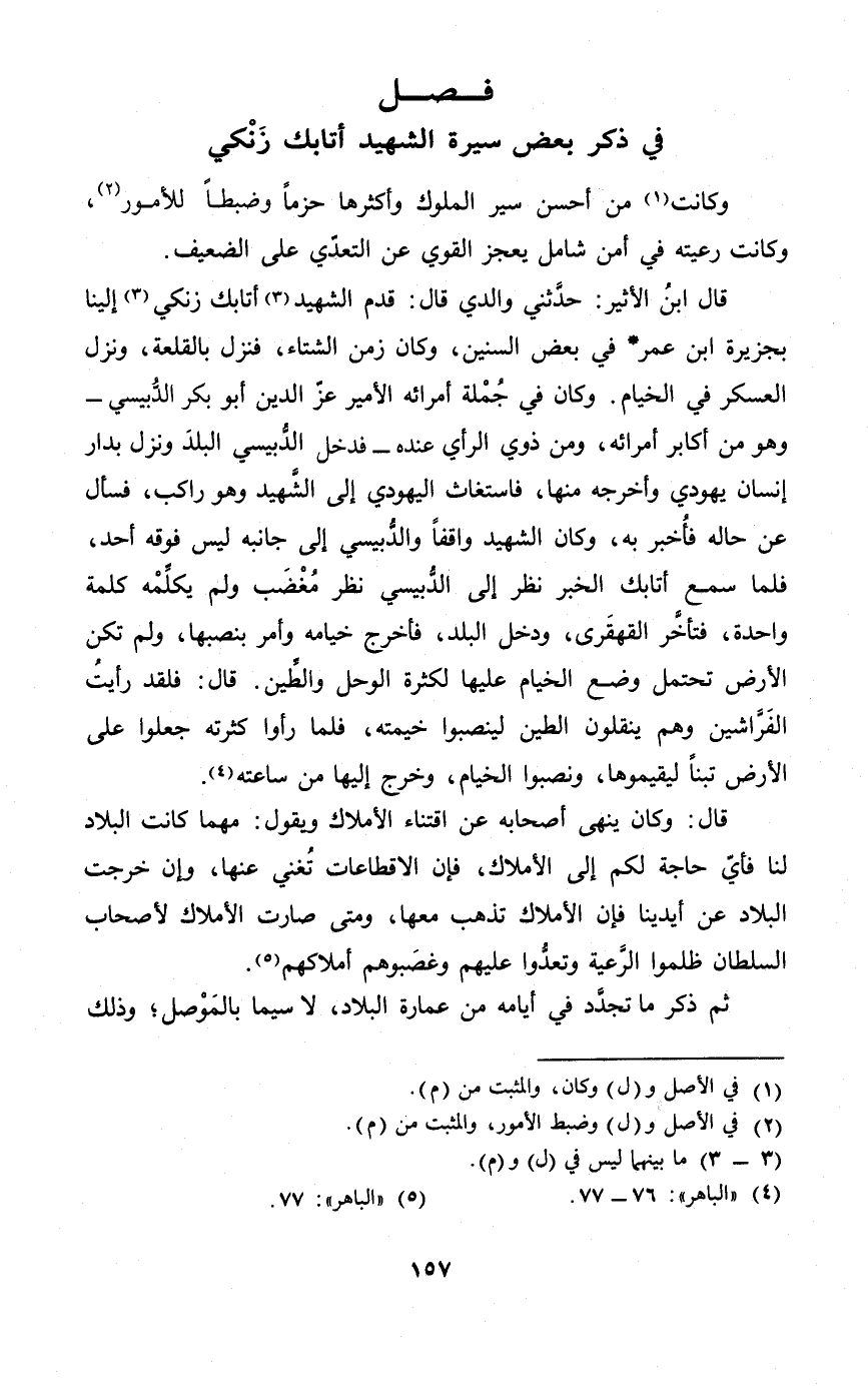 فصل فِي ذكر بعض سيرة الشَّهِيد أتابك زنكي