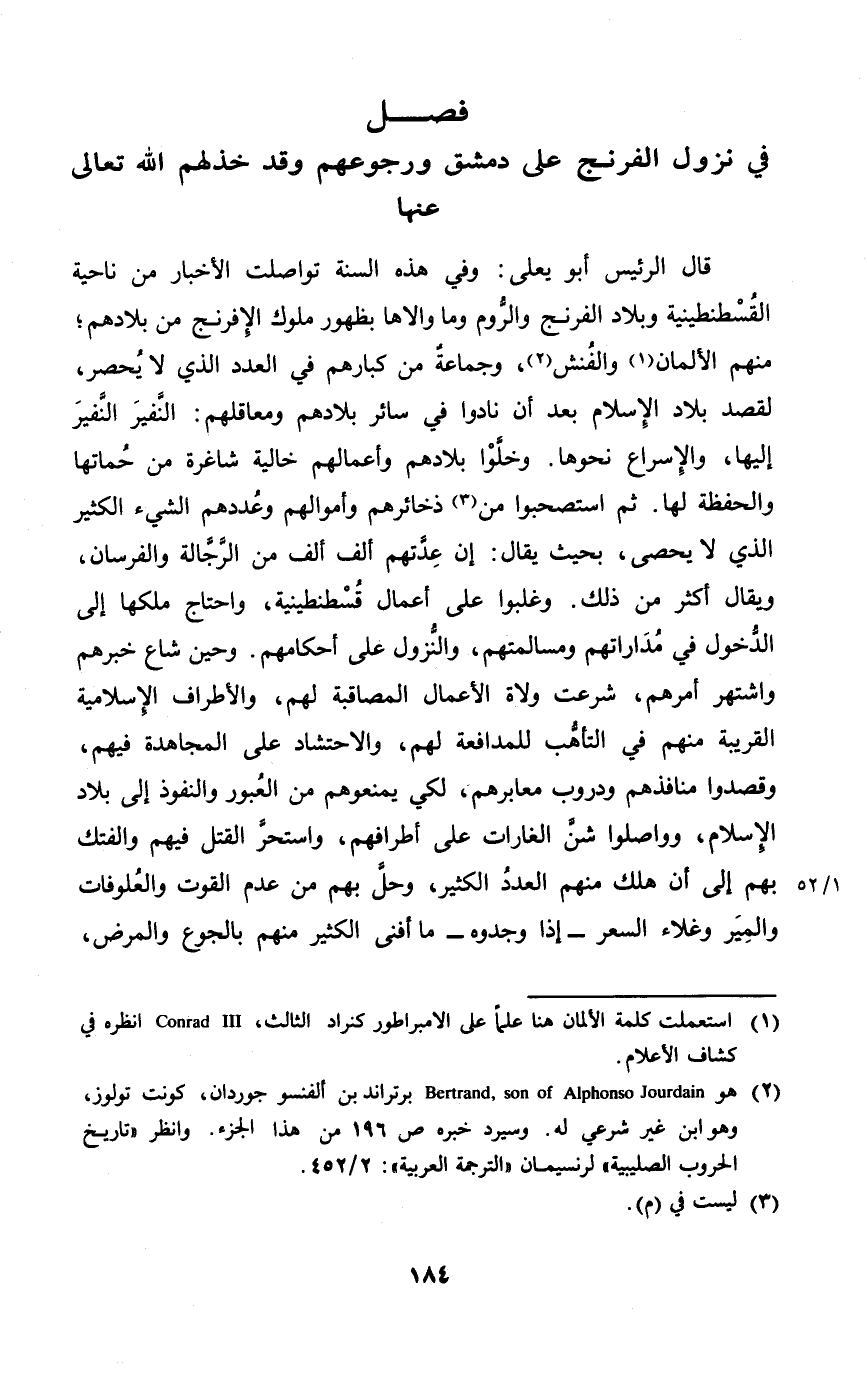 قَالَ الرئيس أَبُو يعلى وَفِي هَذِه السّنة تواصلت الْأَخْبَار من نَاحيَة الْقُسْطَنْطِينِيَّة وبلاد الفرنج وَالروم وَمَا والاها بِظُهُور مُلُوك الإفرنج من بِلَادهمْ مِنْهُم الألمان والفنش وَجَمَاعَة من كبارهم فِي الْعدَد الَّذِي لَا يحصر لقصد بِلَاد الْإِسْلَام بعد أَن نادوا فِي سَائِر بِلَادهمْ ومعاقلهم النفير النفير إِلَيْهَا والإسراع نَحْوهَا