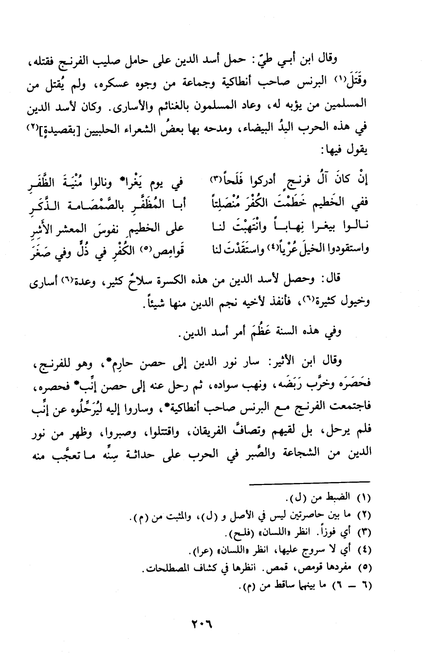 وَكَانَ لأسد الدّين فِي هَذِه الْحَرْب الْيَد الْبَيْضَاء ومدحه بهَا بعض الشُّعَرَاء الحلبيين بقصيدة يَقُول فِيهَا
