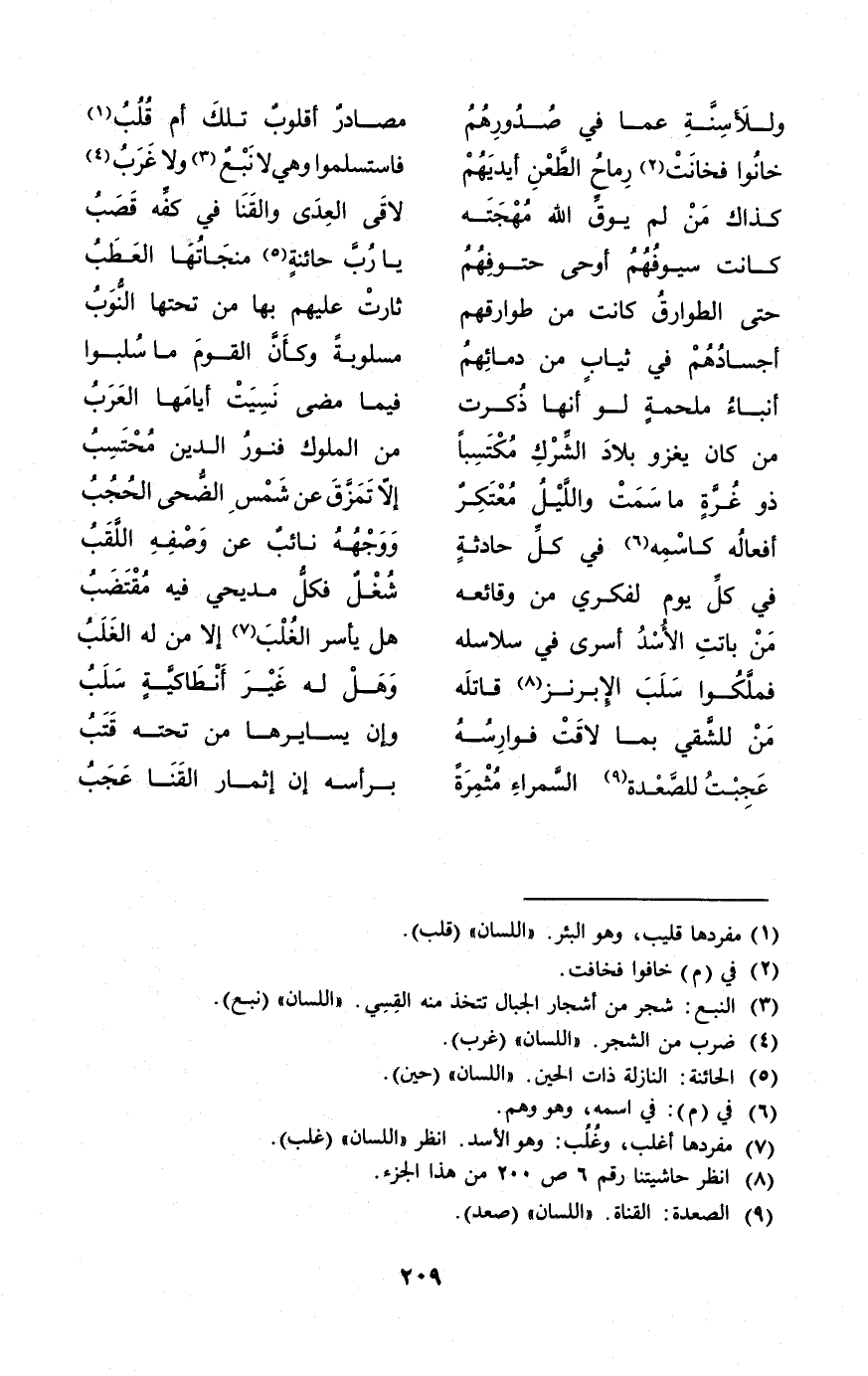 (وللأسنة عَمَّا فِي صُدُورهمْ ... مصَادر أقلوب تِلْكَ أم قُلُب)