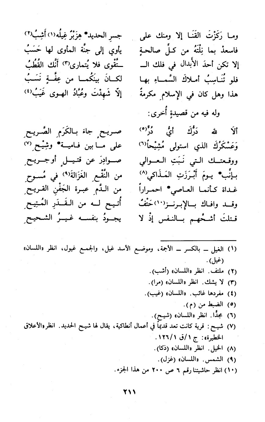 (وَمَا ركزت القنا إِلَّا ومنك على ... جسر الْحَدِيد هزبرٌ غيله أشب)