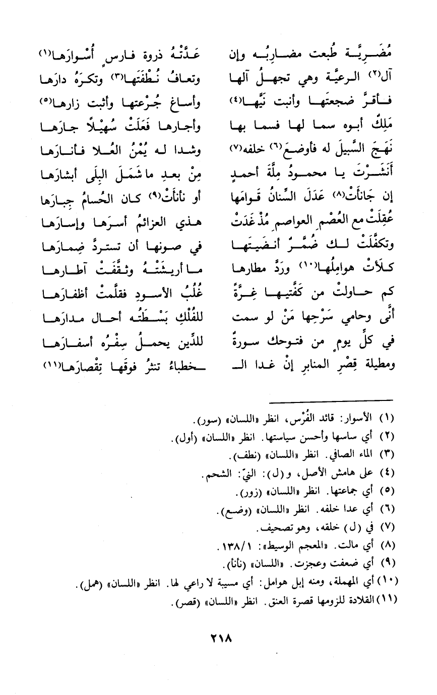 (نهج السَّبِيل لَهُ فَأَوْضَعَ خَلفه ... وشدا لَهُ يمن الْعلَا فأنارها)